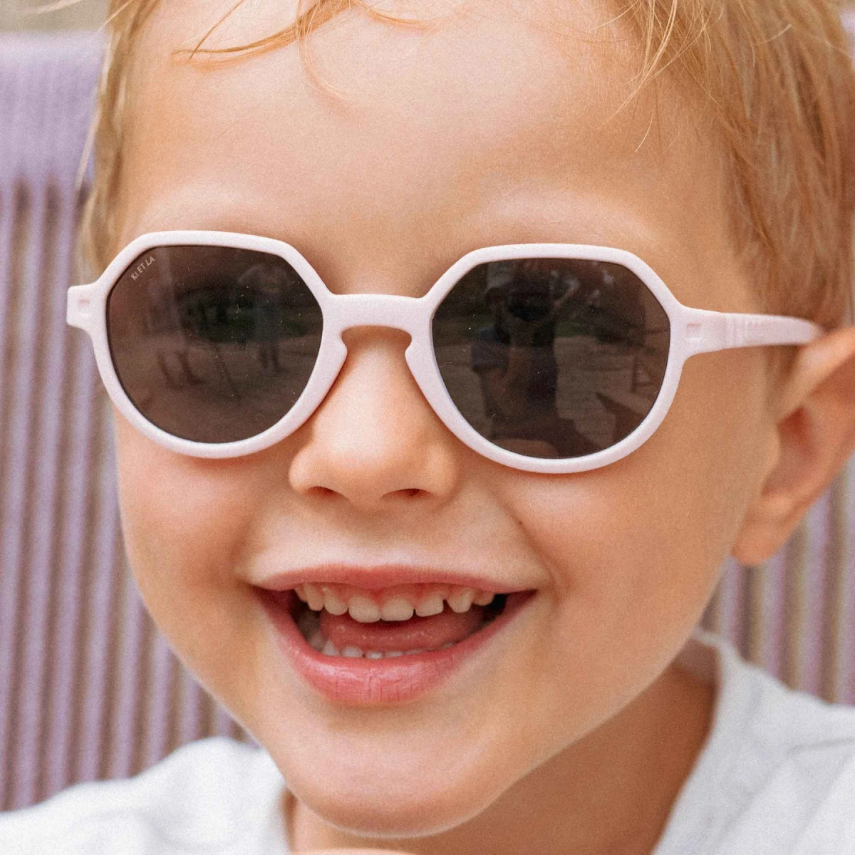 Slnečné okuliare KiETLA Oozz Lavender v nežnom levanduľovom odtieni očarí moderným dizajnom, ľahkým flexibilným rámom a spoľahlivou ochranou detských očí pri každom pobyte na slnku.