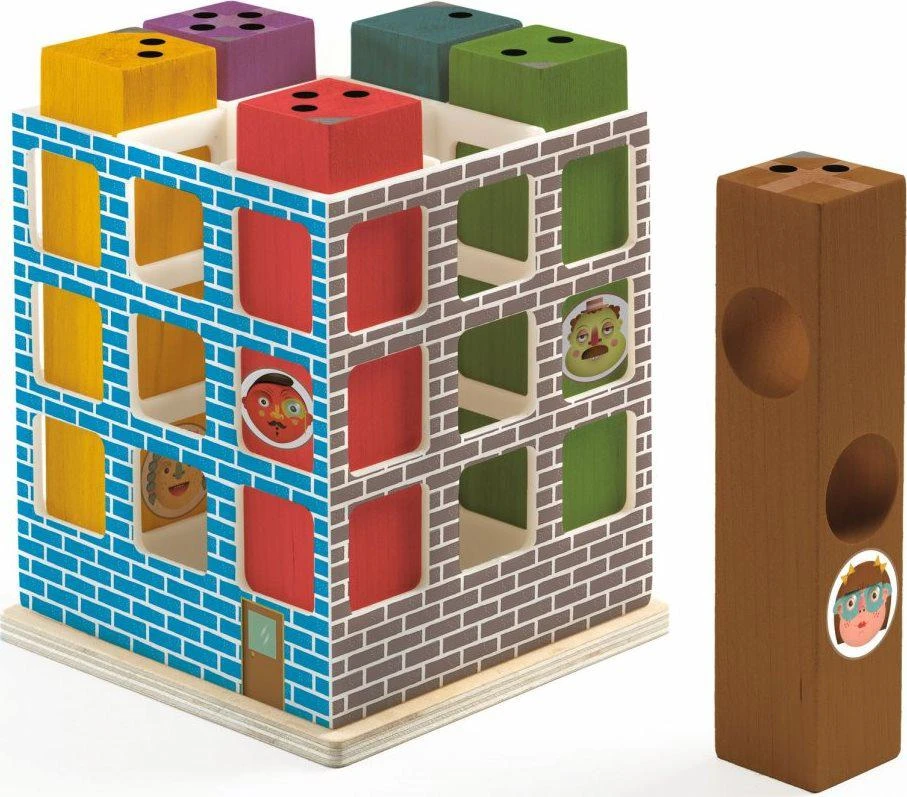 Obsah: 30 kariet, 1 plastová kocka na drevenej podložke, 5 drevených tyčiniek a 1 sada herných pravidiel v 10 jazykoch.