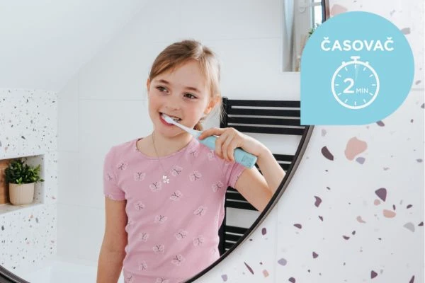Sonická technológia je ideálnou voľbou pre šetrnú starostlivosť o detské zuby . Jemné vibrácie s frekvenciou 34 000 kmitov za minútu odstraňujú povlak a nečistoty bez toho, aby dráždili citlivé ďasná alebo poškodzovali sklovinu. Sonické kmity napomáhajú správnemu čisteniu aj v ťažko dostupných miestach a podporujú zdravý vývoj detského chrupu. Čistenie je nielen dôkladné, ale aj príjemné a pomáha deťom vytvoriť si zdravé návyky už od raného veku.