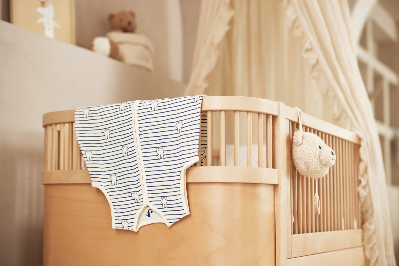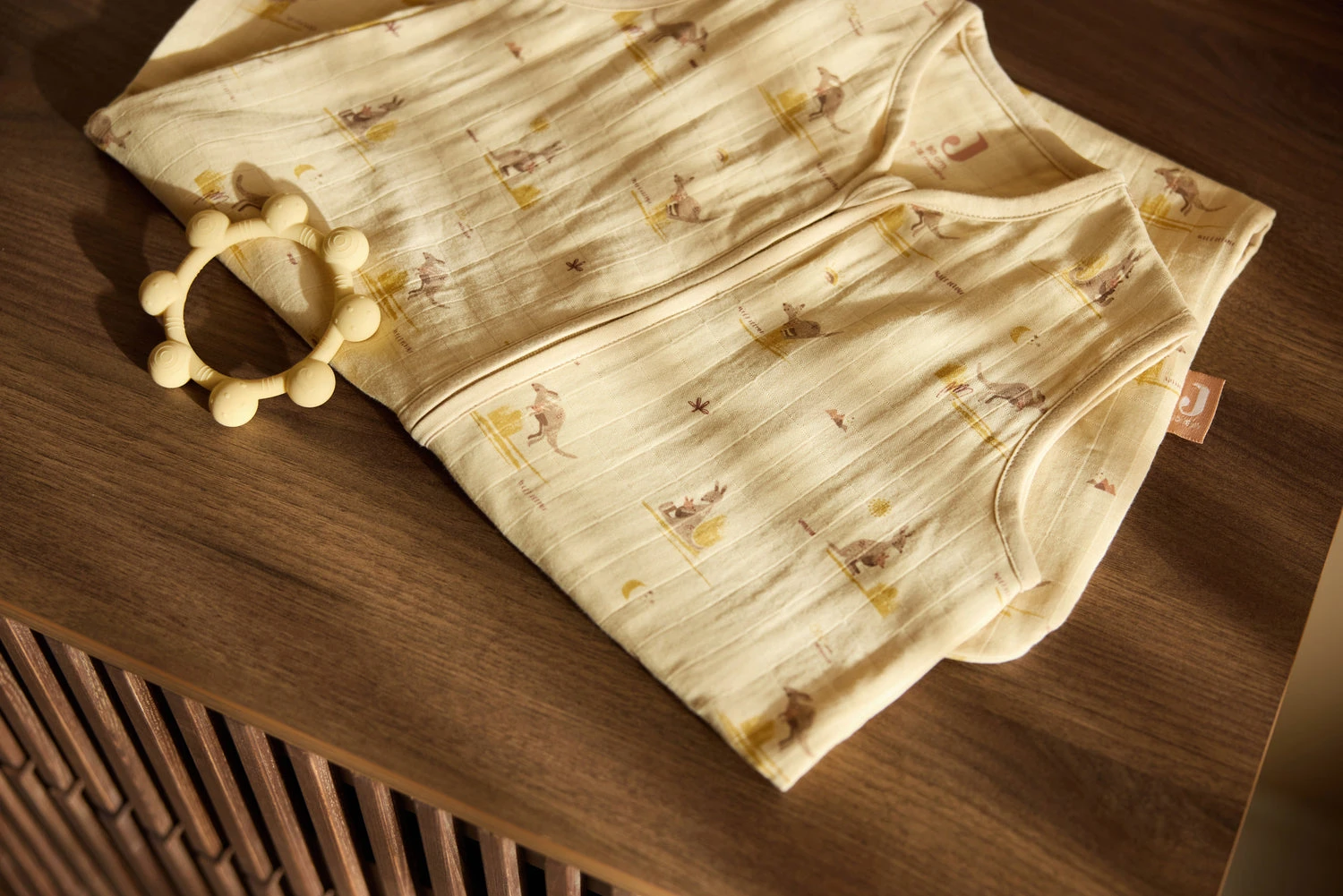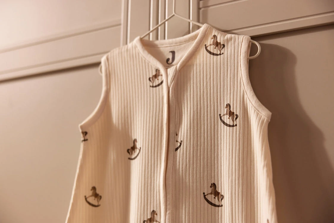 Ľahký spací vak z jemnej 100% bavlny má zips na prednej strane pre ľahké vloženie dieťaťa do spacieho vaku aj prebaľovanie počas spania.
