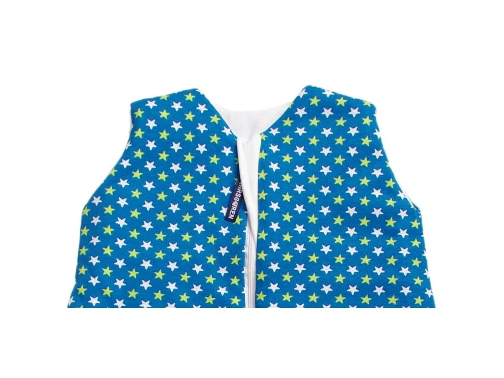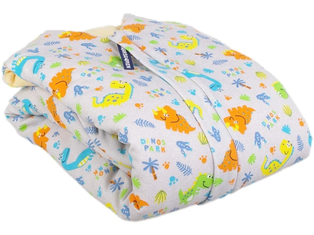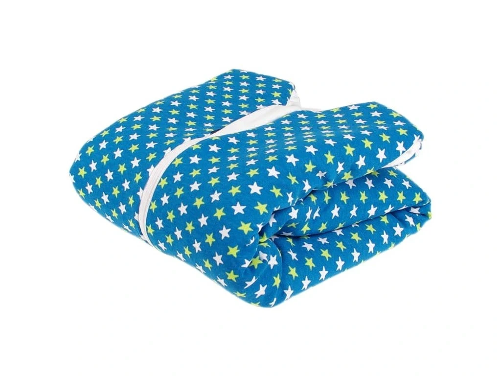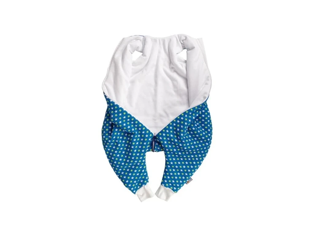 Spací vak je ušitý z troch vrstiev: vrchný materiál 100% bavlna, výplň 100% polyester, podšívka 100% bavlna.