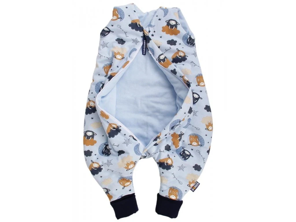 Detské zateplené vrece na spanie s nožičkami je vyrobené zo 100% bavlny a vo vnútri je zateplené antibakteriálnym rúnom.