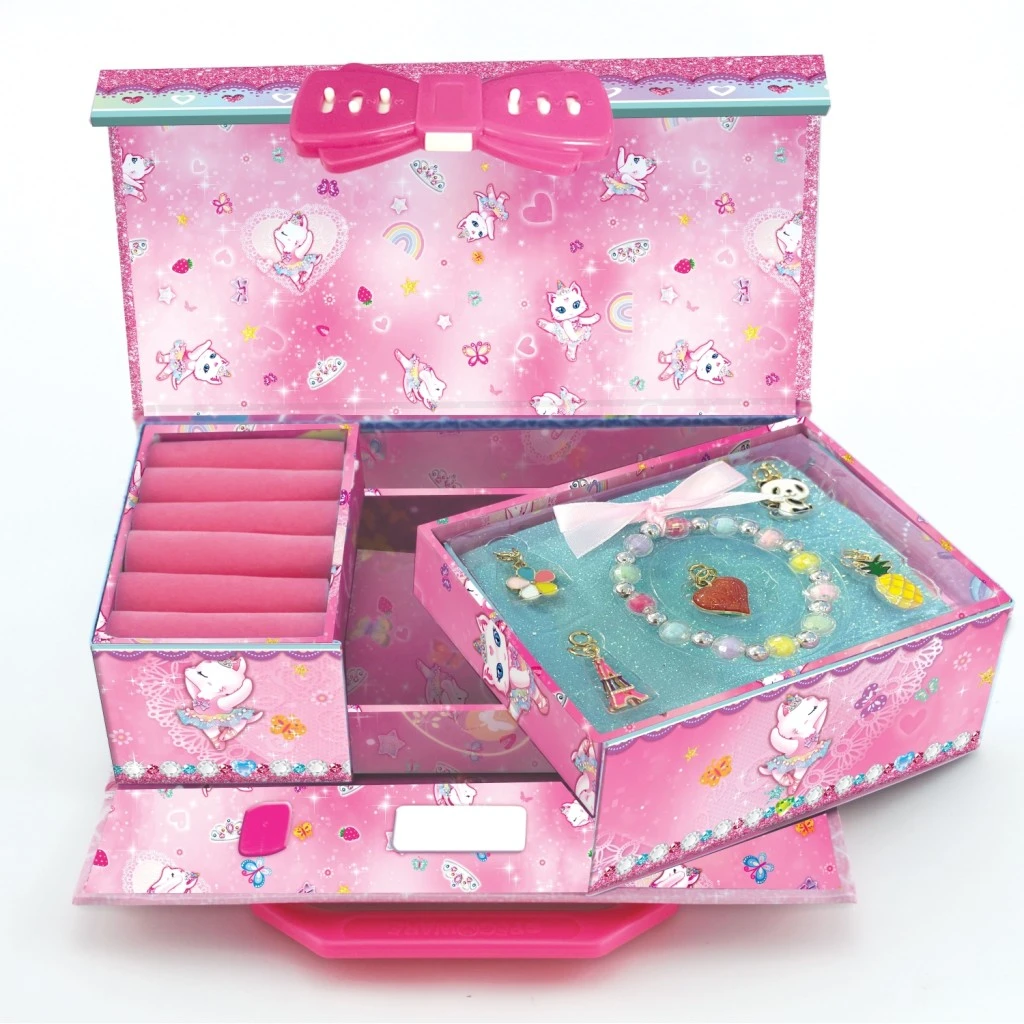Uložte si svoje poklady do kufríkovej šperkovnice s krásnym dizajnom mačičky. Skvelý doplnok pre malé princezné a parádnice. Výrobok je z pevného, ​​odolného papiera s hladkou povrchovou úpravou.