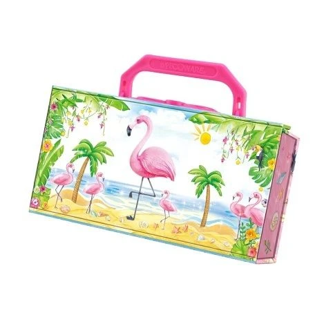 Uložte si svoje poklady do kufríkovej šperkovnice s krásnym dizajnom plameniaka. Skvelý doplnok pre malé princezné a parádnice. Výrobok je z pevného, ​​odolného papiera s hladkou povrchovou úpravou.