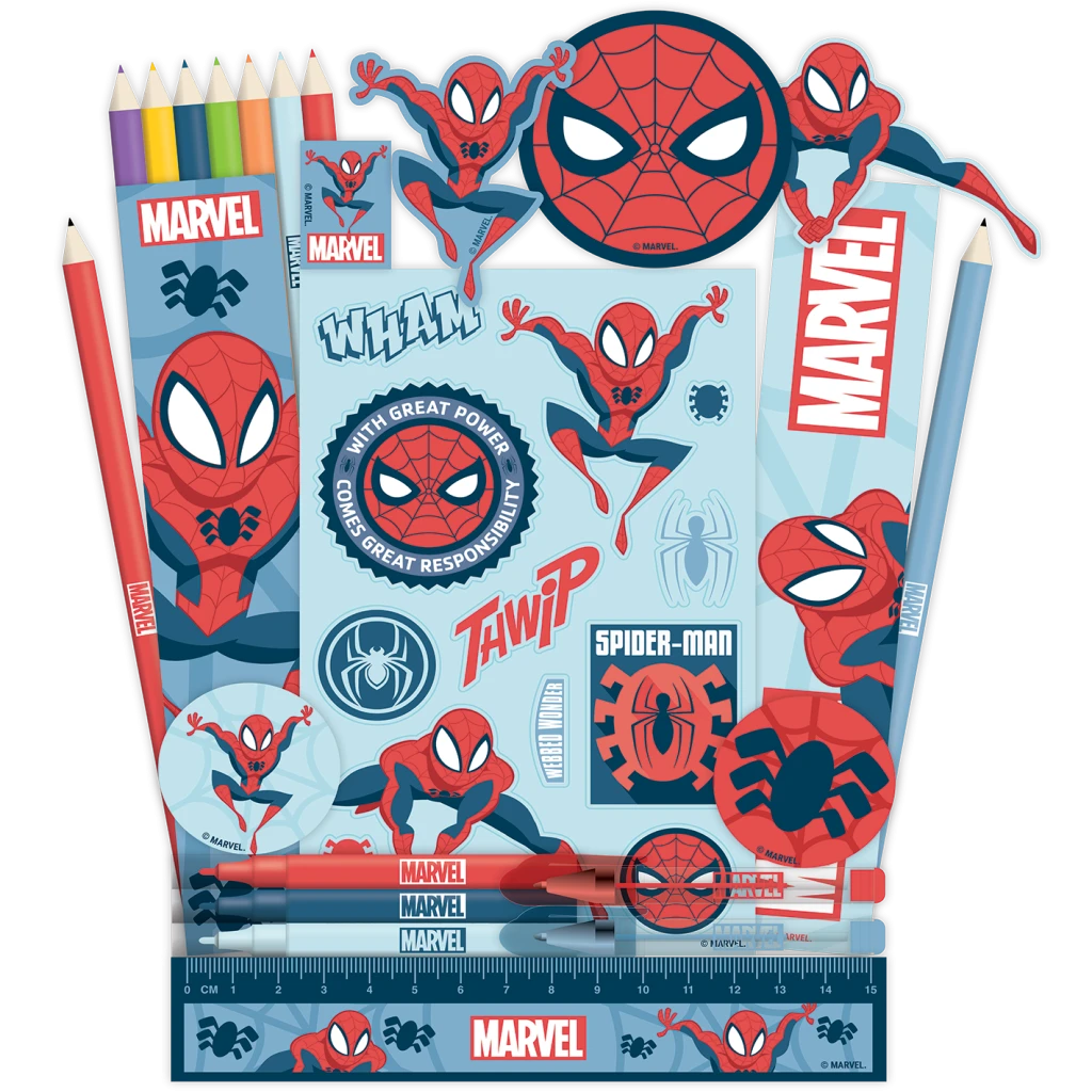 S papierenským adventným kalendárom Spiderman bude čakanie na Vianoce plné akcie! Každé okienko skrýva prekvapenie pre všetkých malých superhrdinov a fanúšikov marvelovského sveta. Kalendár obsahuje 1 pravítko (15 cm), 1 strúhadlo, 2 gumy, 2 záložky, 3 mini vodové fixy, 7 mini pasteliek, 2 mini gélové perá, 2 ceruzky HB, 3 magnetky a 1 hárok samolepiek. Každý deň nový darček, ktorý poteší školákov aj kreatívne deti. Perfektné spojenie zábavy, užitočnosti a hrdinského štýlu.