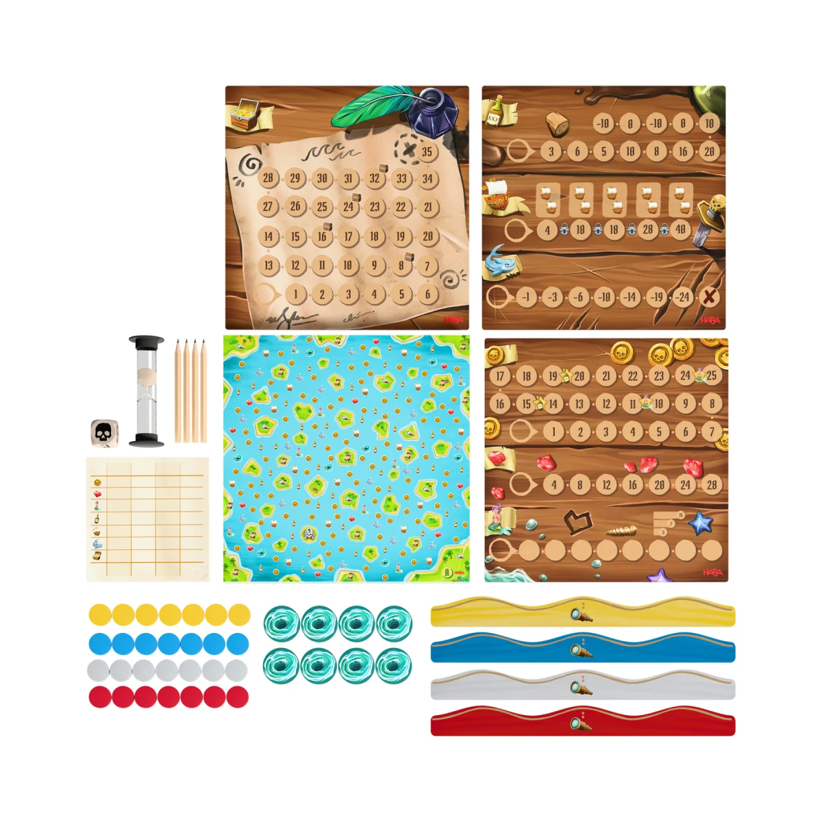 Ahoj, piráti! Naostrite si ceruzky a pripravte sa kresliť mazané trasy na svojich námorných mapách, aby ste získali čo najviac pokladov a pirátskych koristí. Hráč, ktorý nazbiera najviac bodov, vyhráva hru!