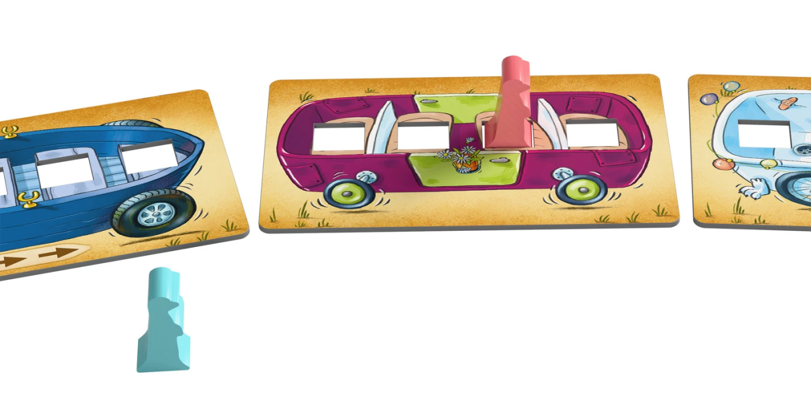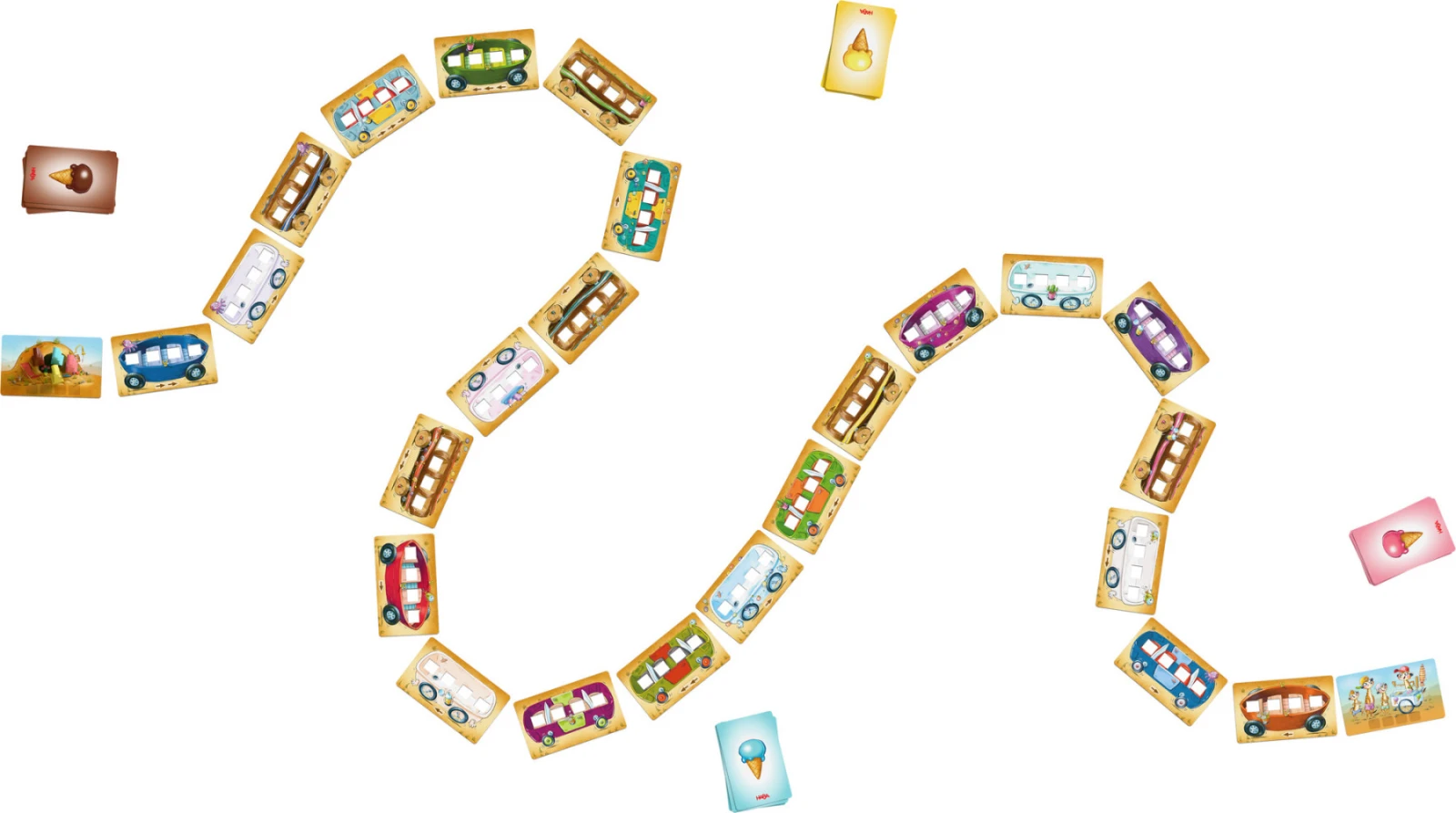 Obsah balenia: 4 surikaty, 1 surikatínová nora, 1 zmrzlinársky vozík, 24 autíčok (každé so 4 vyrazenými miestami), 4 rôznofarebné sady kariet.