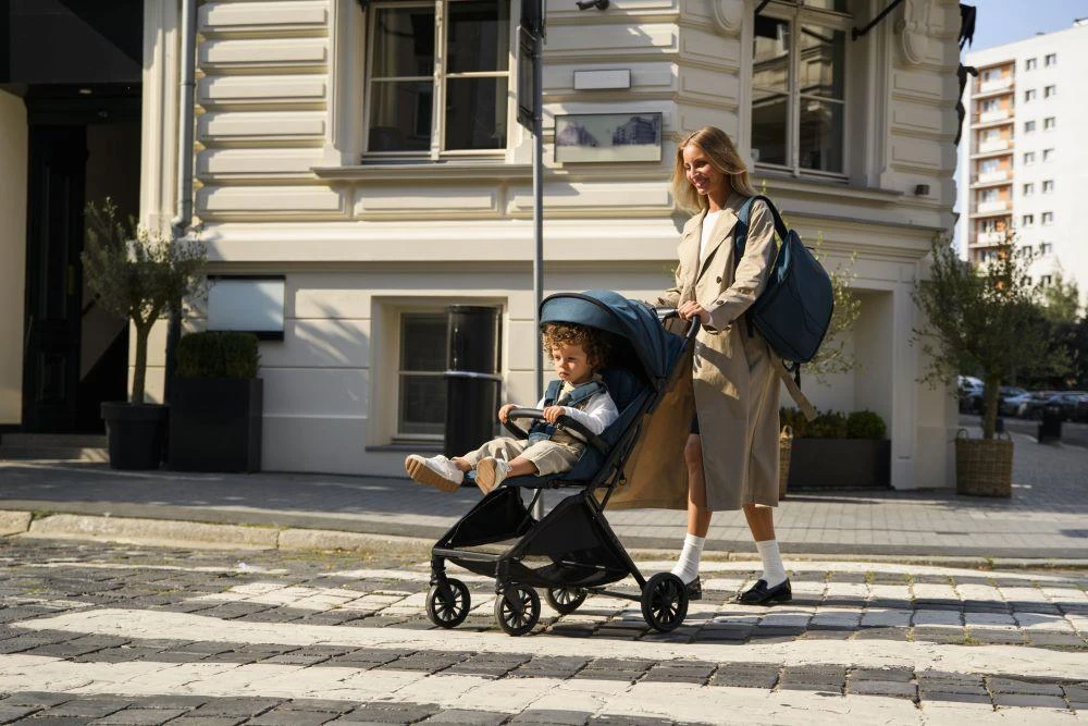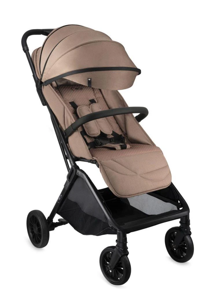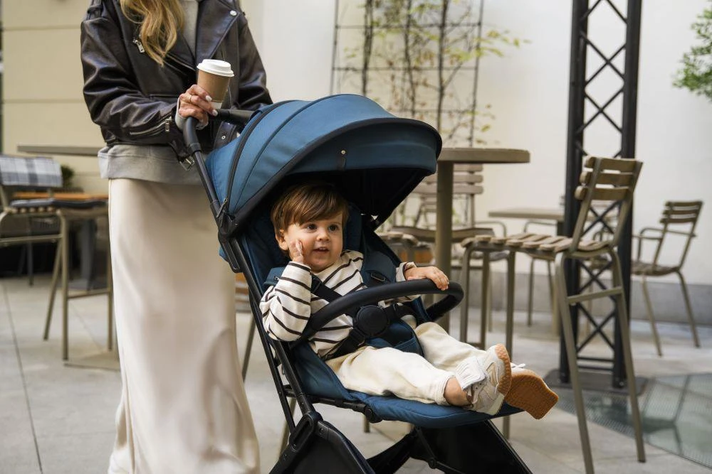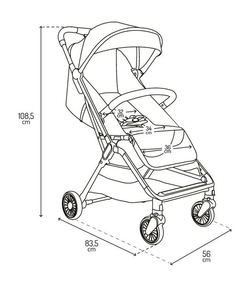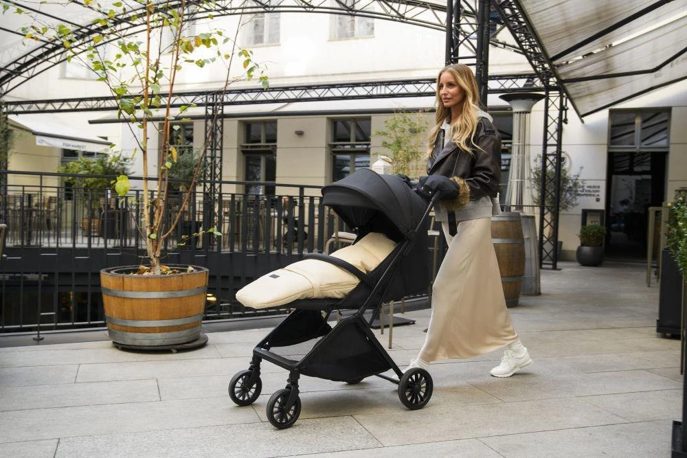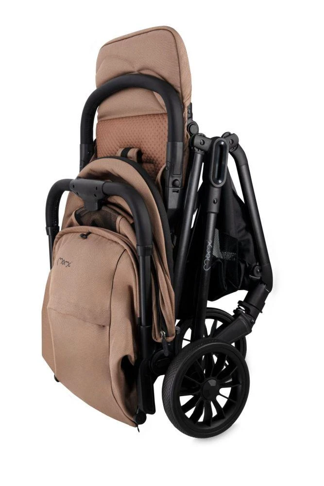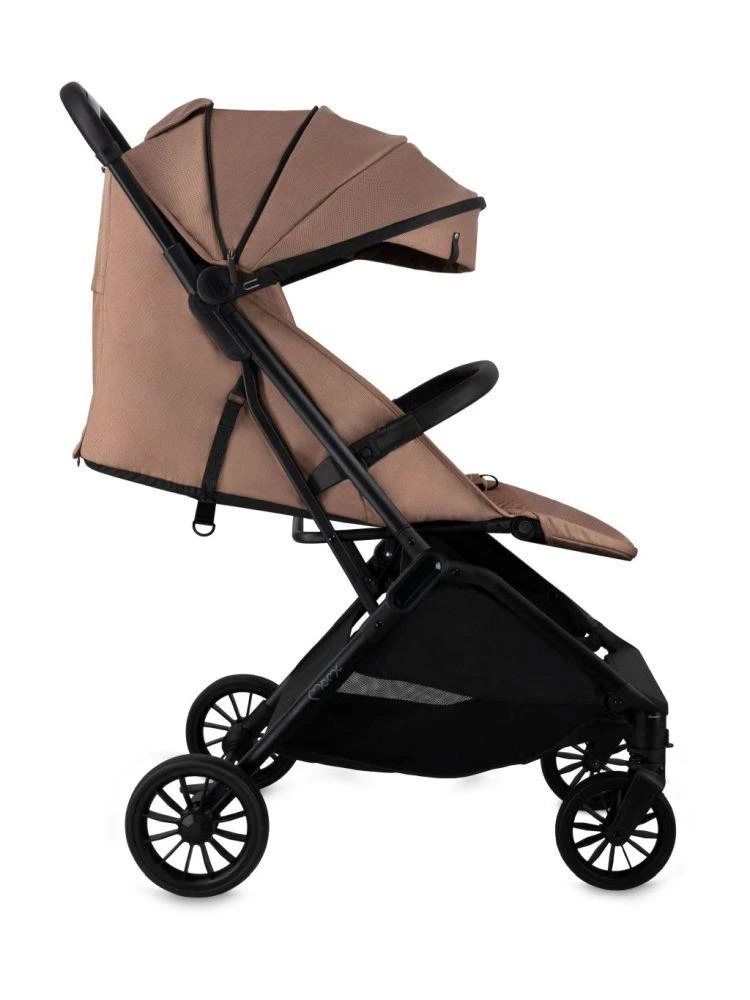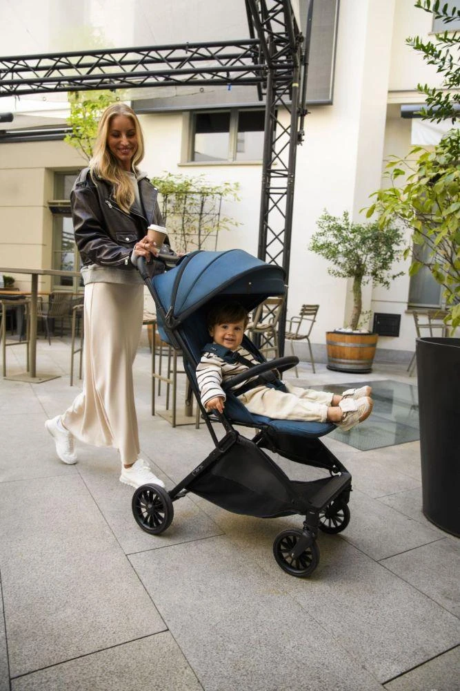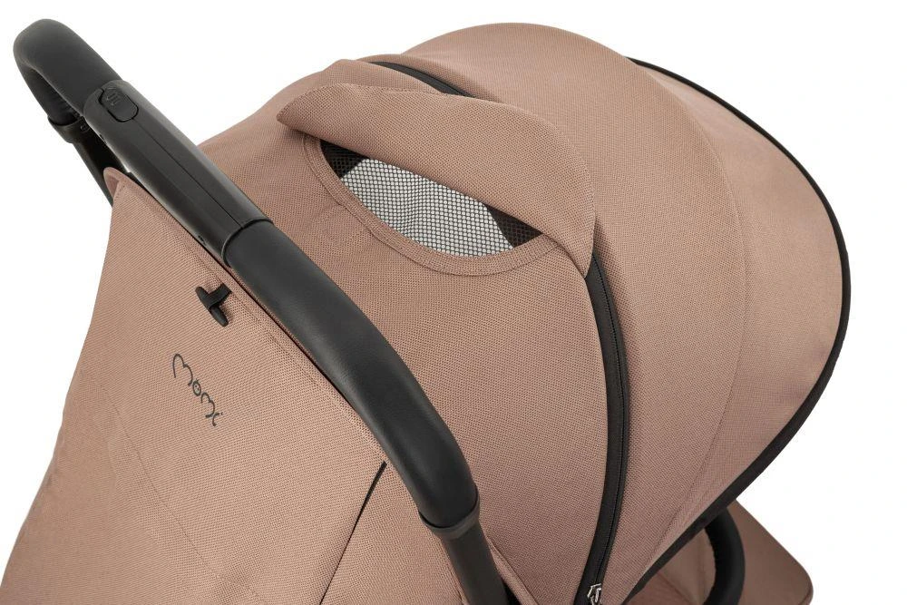 Kočík MoMi ANDREA má samoskladací systém , vždy pripravený stlačením jediného tlačidla! Po zložení do kompaktnej veľkosti kočík stabilne stojí vo vertikálnej polohe.