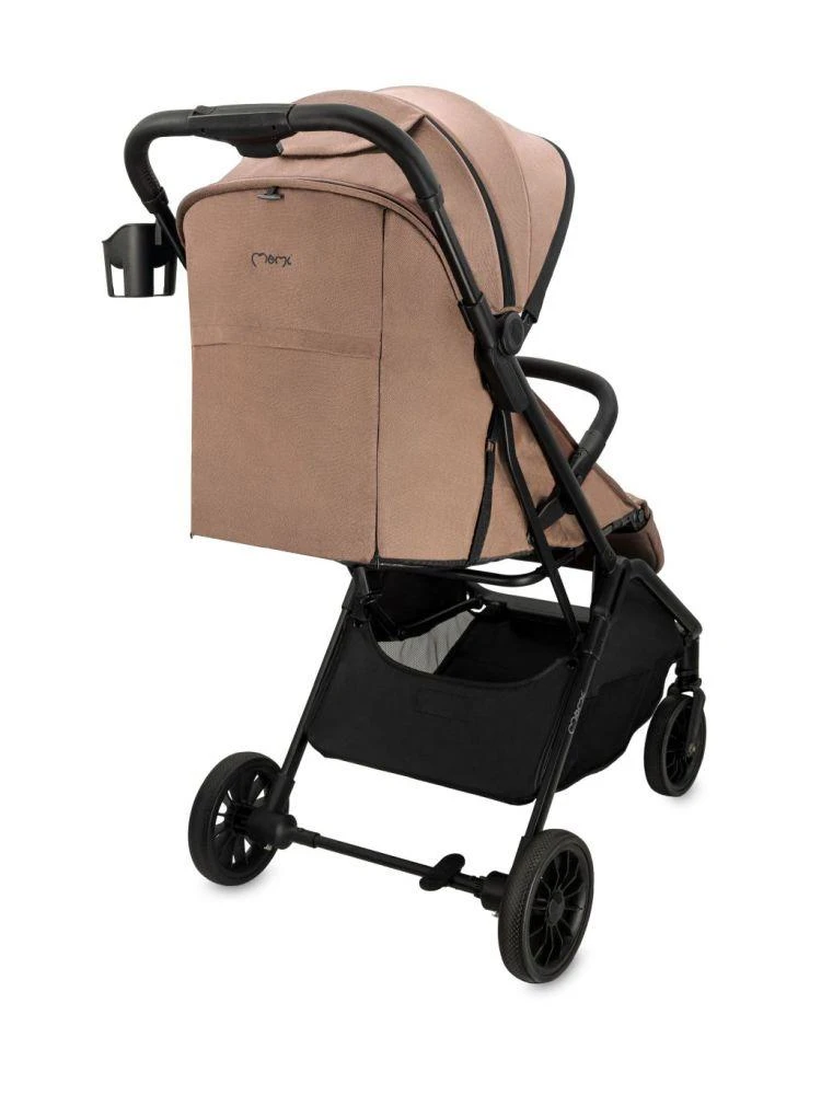 Kočík MoMi ANDREA je vybavený samoskladacím systémom, ktorý umožňuje rýchle a jednoduché zloženie kočíka jednou rukou, vďaka čomu je mimoriadne praktický pri každodennom používaní. Kočík je dodávaný so základným príslušenstvom: batohom, držiakom na nápoje, moskytiérou a pláštenkou.