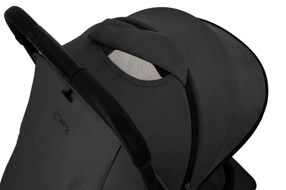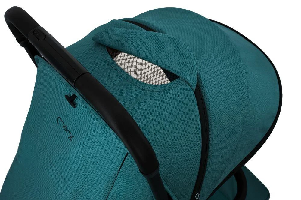 Strieška s okienkom umožňuje pozorovať dieťa; po sklopení sedadla je možné otvoriť druhé okienko so vzdušnou sieťovinou, ktoré zaisťuje lepšie vetranie v teplých dňoch.