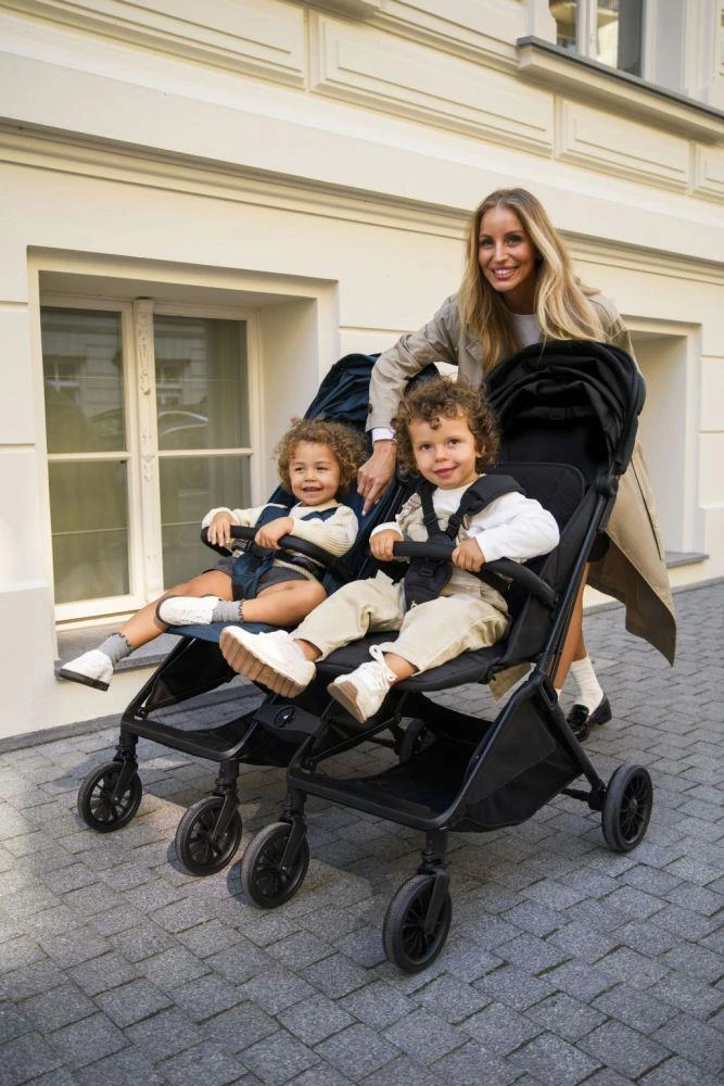 Samostatne je možné dokúpiť sadu adaptérov a spojiť dva kočíky dohromady. Vytvoríte tak spoločný kočík pre súrodencov alebo dvojčatá.