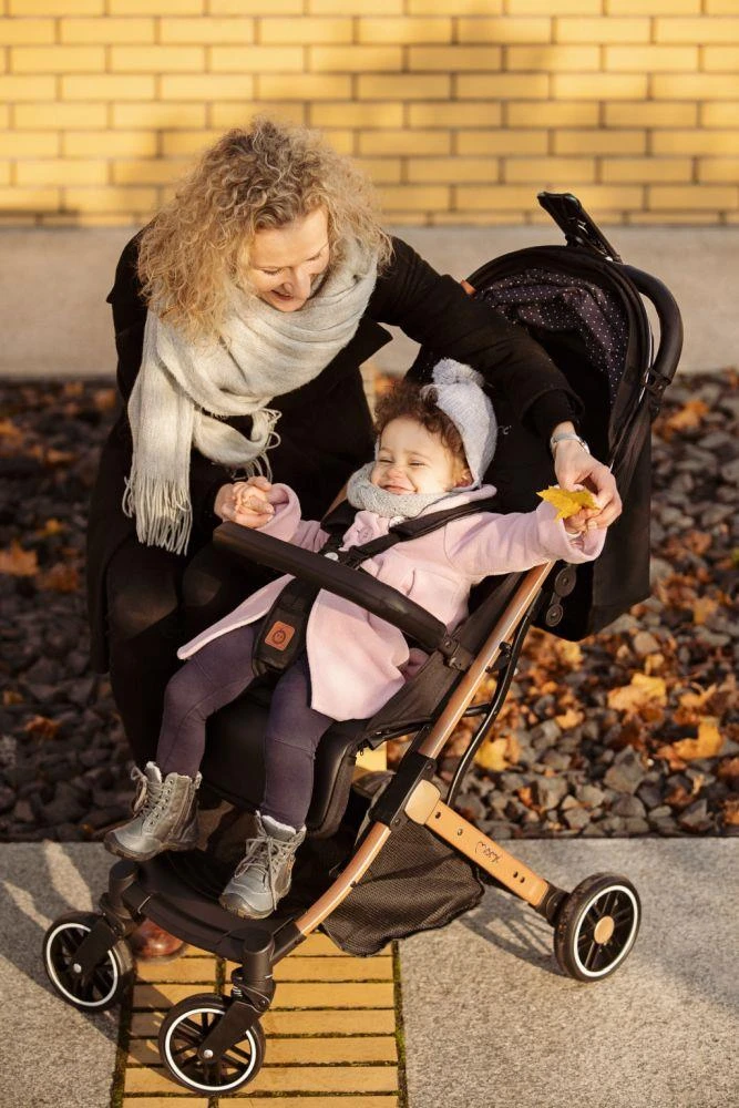 Nebojte sa, s kočíkom MoMi ESTELLE bude v bezpečí. Kočík má schodíky na nastupovanie, ktoré sú na trhu jedinečné.
