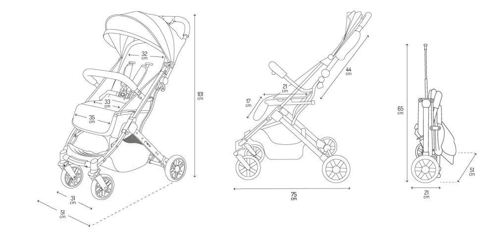 - Dvojitá poistka zabraňujúca samovoľnému skladaniu a rozkladaniu kočíka