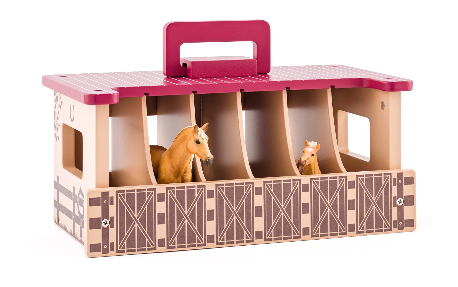 Drevená prenosná stajňa pre kone poteší všetky deti, ktoré milujú zvieratá a hry na farmu.