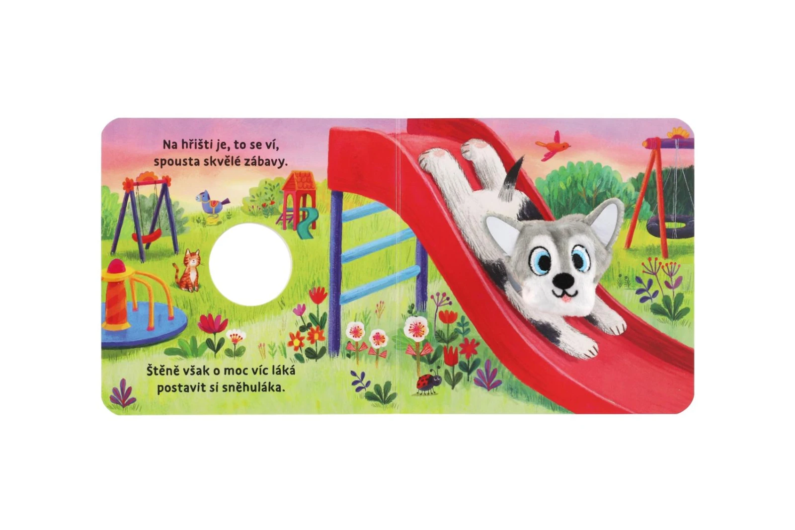 Šteniatko zo všetkého najviac túži po snehu, lenže práve panuje horúce leto... jeho príbeh malého poslucháča zaujme vďaka hravým veršíkom aj vďaka tomu, že hlavného hrdinu nepredstavuje obyčajné ilustrácie v knižke, ale prstový maňuška pripevnený ku knihe, ktorého si môže aj pohladiť alebo si pohladiť.