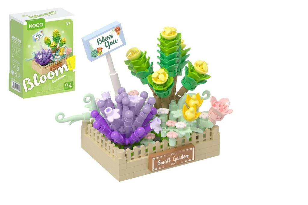 Prineste do svojho života dotyk prírody a radosť z tvorenia so stavebnicou KOCO. Táto sada vás očarí svojimi jemnými pastelovými tónmi a rozkvitnutou záhradkou, ktorá je zasadená do rustikálneho dreveného kvetináča s nápisom Small Garden.