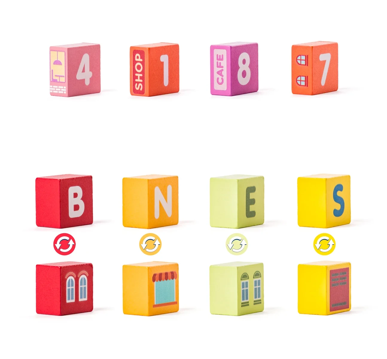 Otvor kýblik plný farebných drevených kociek v jedinečnom dizajne českej výtvarníčky a postav si vlastné mesto plné života!