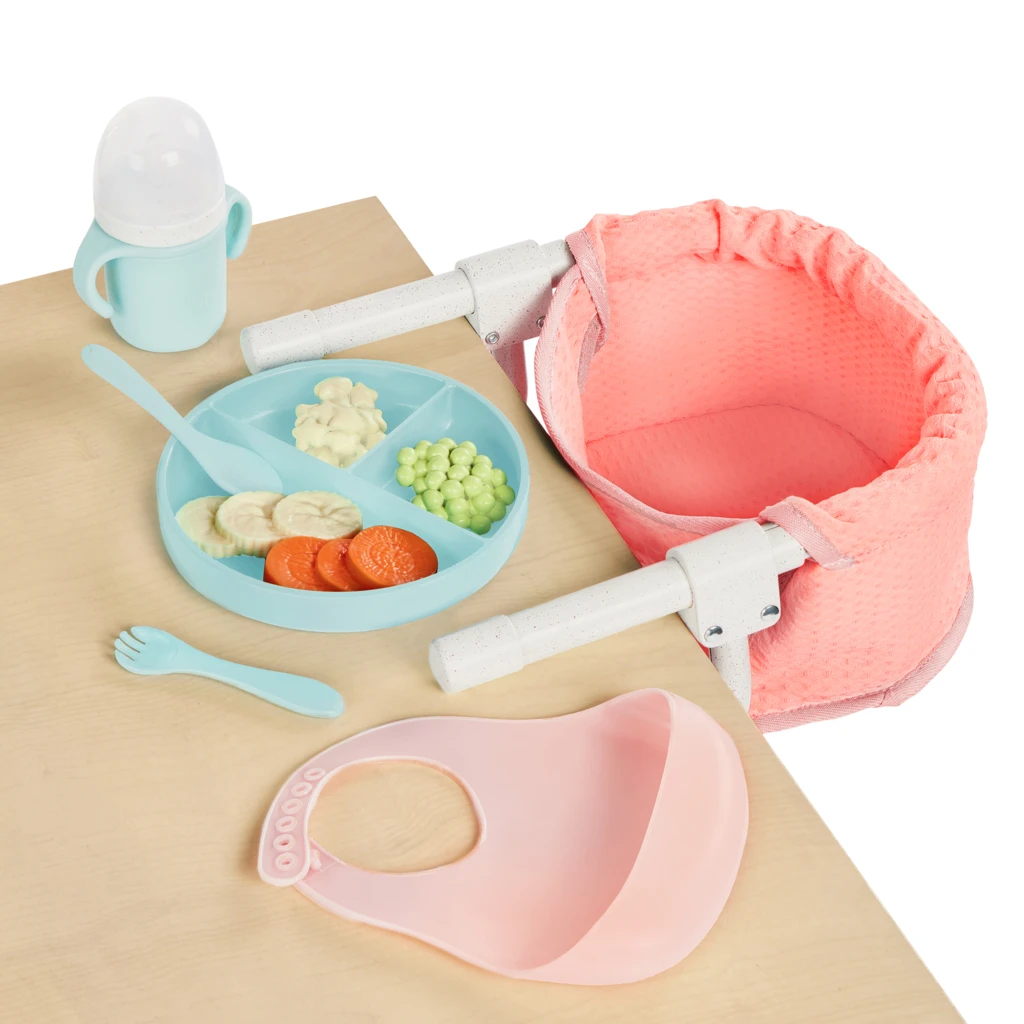 Doprajte bábike vášho dieťaťa miesto pri stole s praktickou jedálenskou stoličkou LullaBaby, ktorú ľahko pripevníte k doske stola!