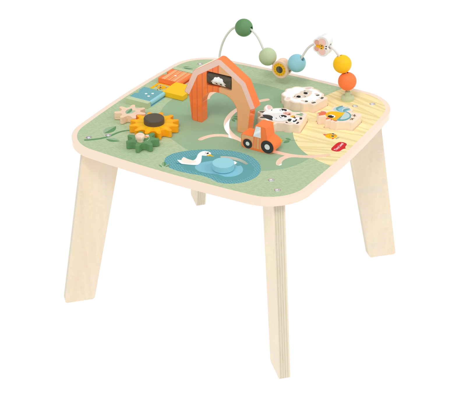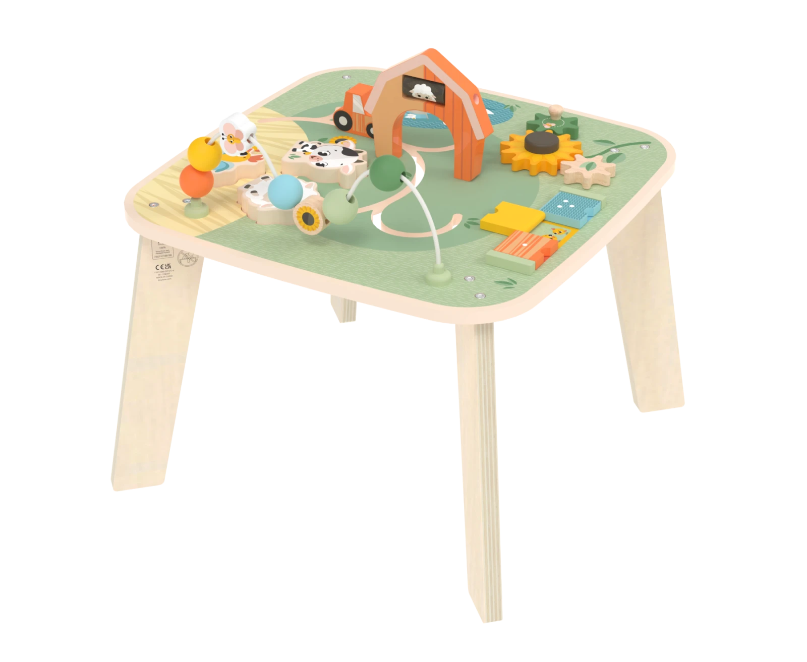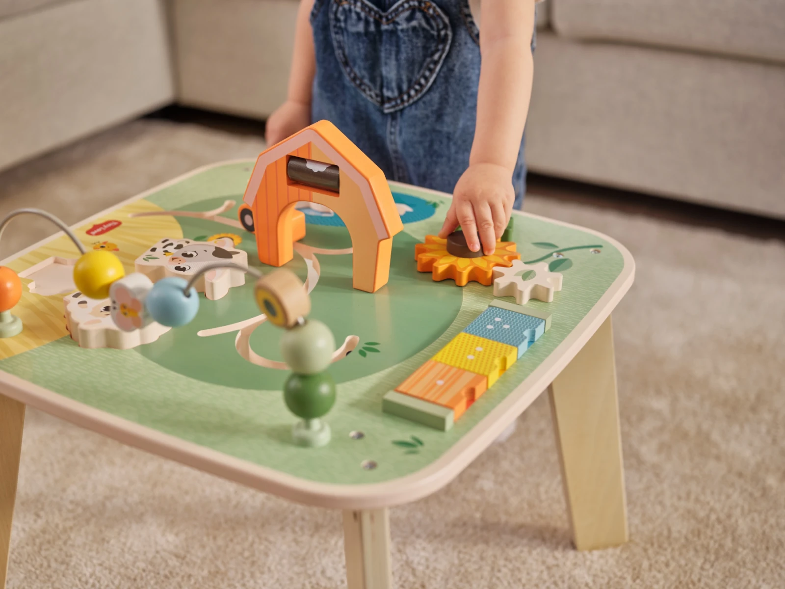 Stolík s aktivitami drevený Farmers Funday Tiny Love