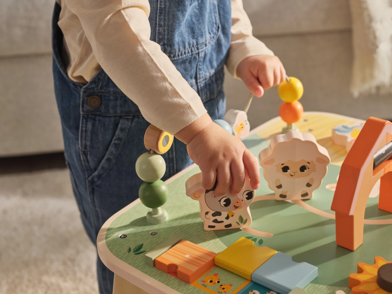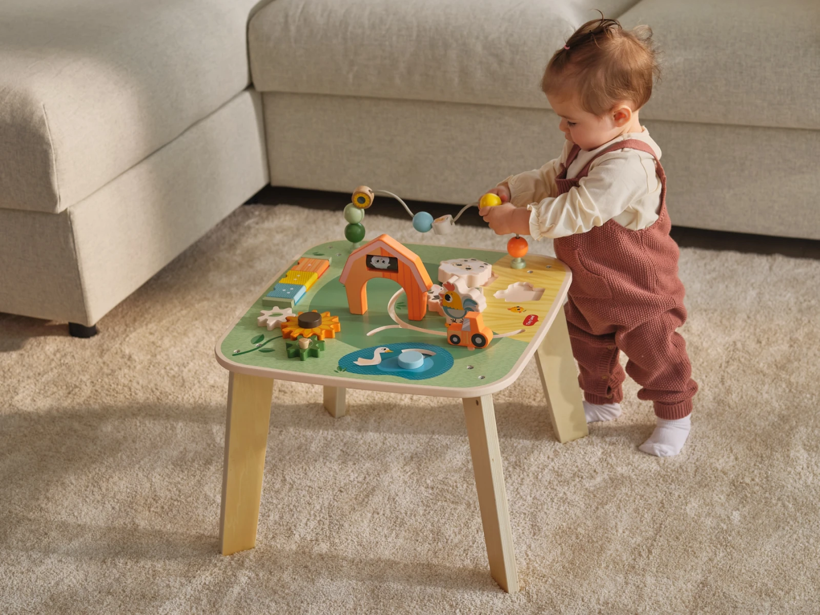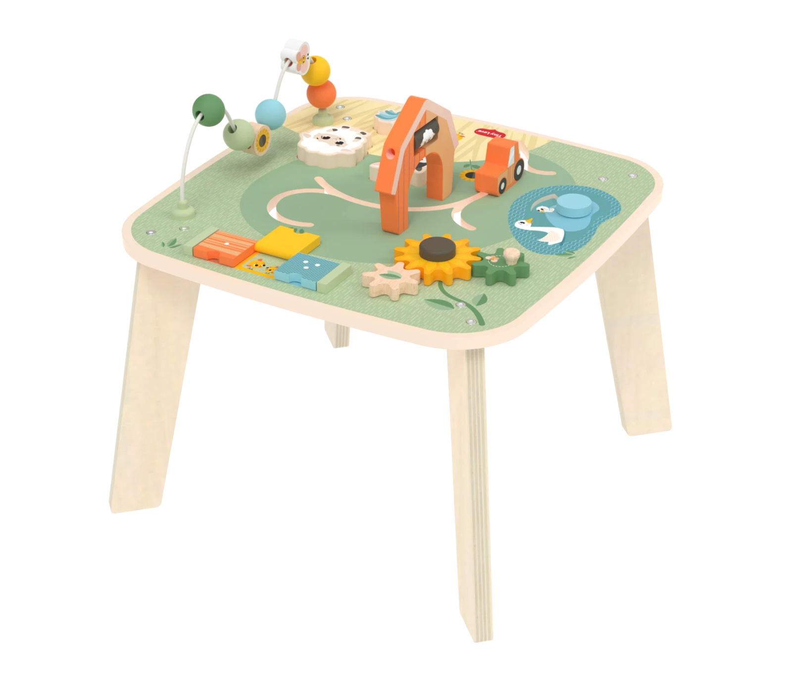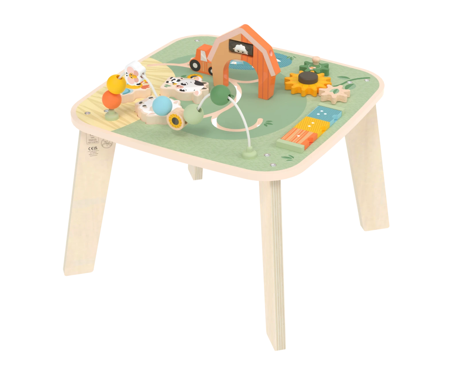 Stolík s aktivitami drevený Farmers Funday Tiny Love