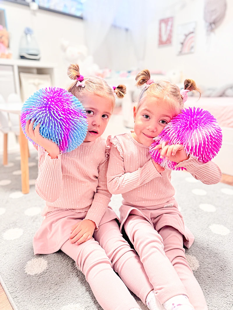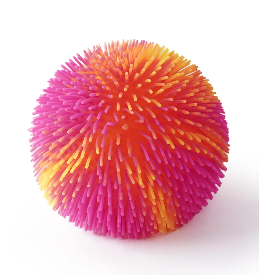 Dúhová strapatá lopta, ktorá pri pohybe svieti. Hádž, ťahaj, naťahuj….
