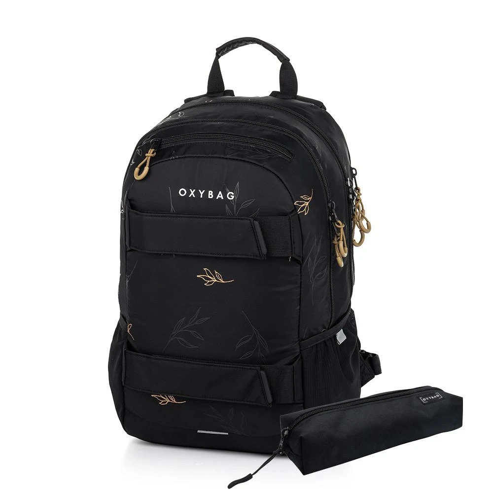Študentský aj voľnočasový školský plecniak radu OXY SPORT vyniká ergonomicky tvarovaným chrbtom, nastaviteľnými polstrovanými ramennými popruhmi a hrudným popruhom, vďaka ktorým sa pohodlne nosia. Batoh sa skladá z dvoch hlavných komôr a jedného menšieho predného vrecka s pevnými zipsami a praktickými pútkami. Vnútri batohu je vystužené vrecko na notebook do 15'', karabína na kľúče, menšie vrecko na drobnosti a skryté vrecko na chrbte. Nechýba ani bočné vrecko na fľašu na pitie a rad reflexných prvkov, vďaka ktorým je batoh lepšie viditeľný. Batoh je ideálny ako do školy pre školákov na druhom stupni tak aj pre voľnočasové aktivity študentov a dospelých.