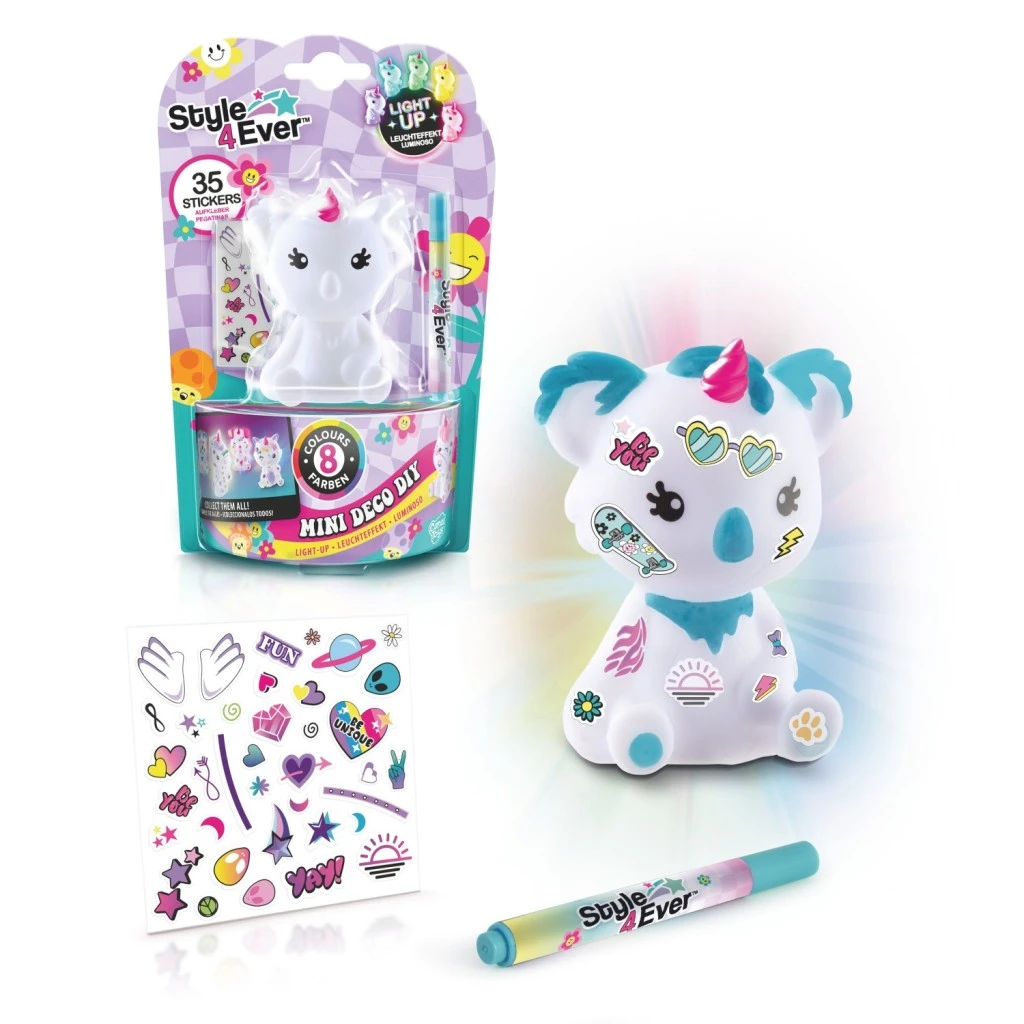 Oživte svoj priestor s touto jedinečnou svietiacou figúrkou Style4Ever, ktorá ponúka nielen krásne jemné svetlo, ale aj veľa možností pre vlastnú kreativitu! Na výber je 12 rôznych azortov - 6 jednorožcov, 2 koaly, 2 spi, 2 mačky. V každom balení nájdete samolepky a fixku na dozdobenie figúrky podľa vášho vlastného štýlu. Vytvorte si tak jedinečný kúsok, ktorý bude dokonale ladiť s vašim interiérom.