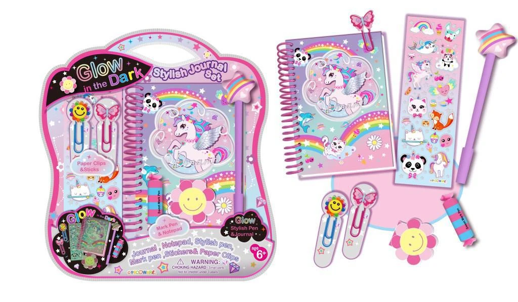 Zapíšte a nakreslite si svoje zážitky do tajného denníka s nádherným dizajnom, ktorého povrch aj samolepky v tme svietia!