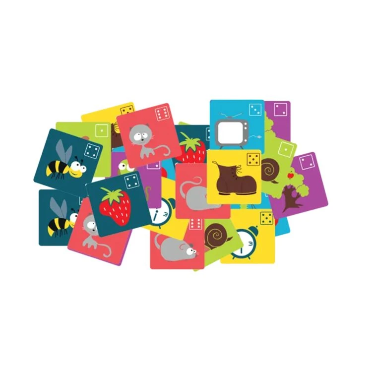 Bambilion - súbor detských hier do vrecka obsahuje: 24 hrubých kartičiek z kartónu, 4 figúrky, 4 kocky, 20 kariet s návodmi (čo karta, to návod).