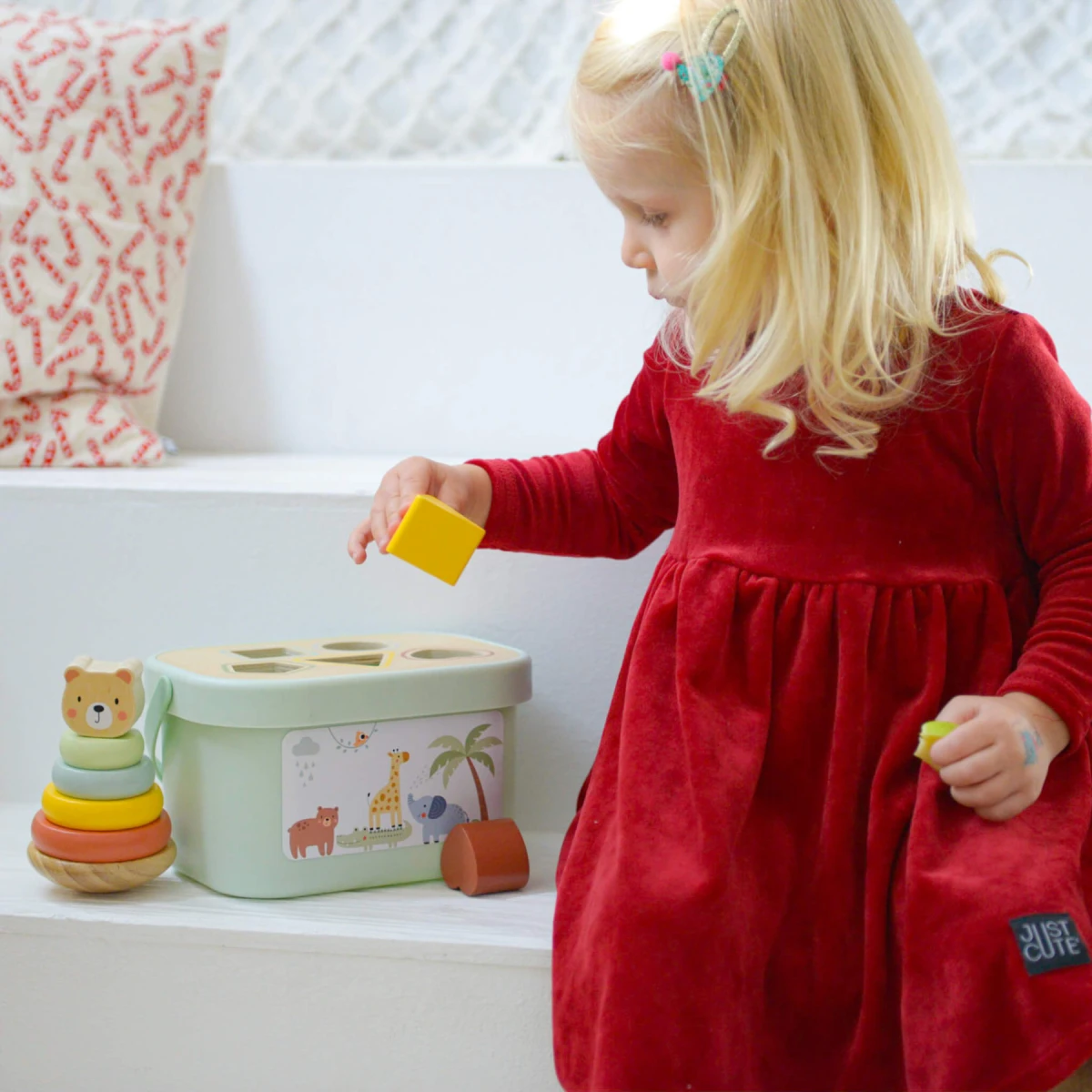 Hračky sú vyrobené z kvalitných, zdravotne nezávadných materiálov a navrhnuté tak, aby sa dobre držali v malých detských rukách. Pastelové farby pôsobia pokojne a nadčasovo, vďaka čomu je sada nielen praktická, ale aj esteticky príjemná. Ideálna voľba pre každodenné hranie aj ako krásny darček.