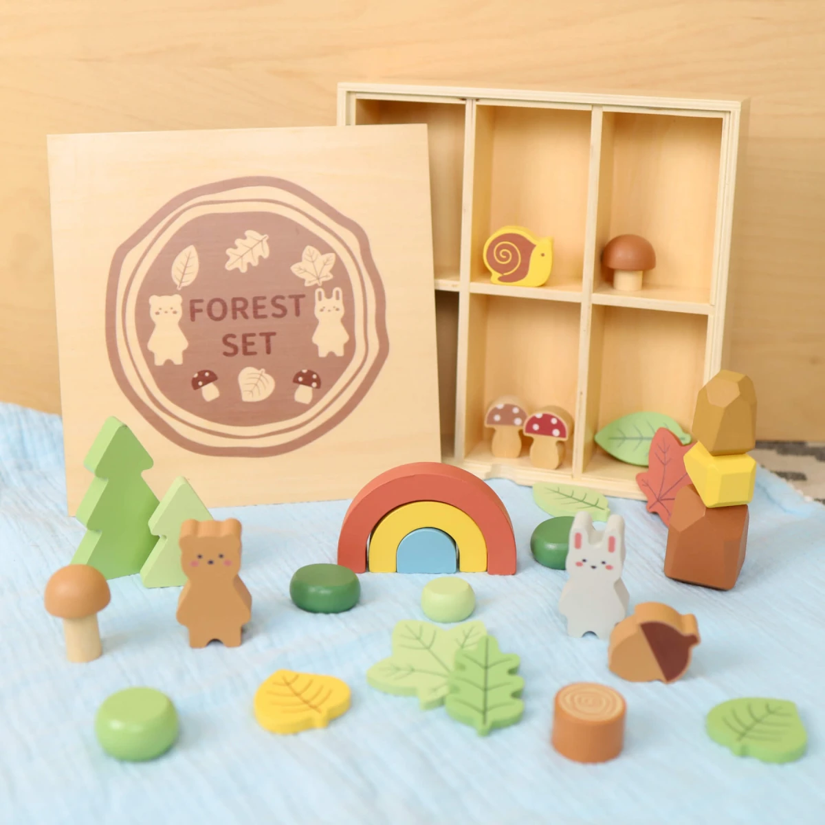 Otvorte krabičku a vo vnútri nájdete celý les – plný zvieratiek, stromov, kameňov a lesnej atmosféry. Táto drevená súprava značky Tooky Toy umožňuje deťom vytvárať vlastné scény, príbehy a prebúdzať ich vzťah k prírode. Hrací set, ktorý rastie s dieťaťom.