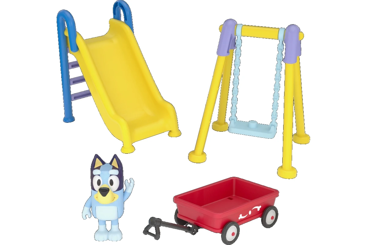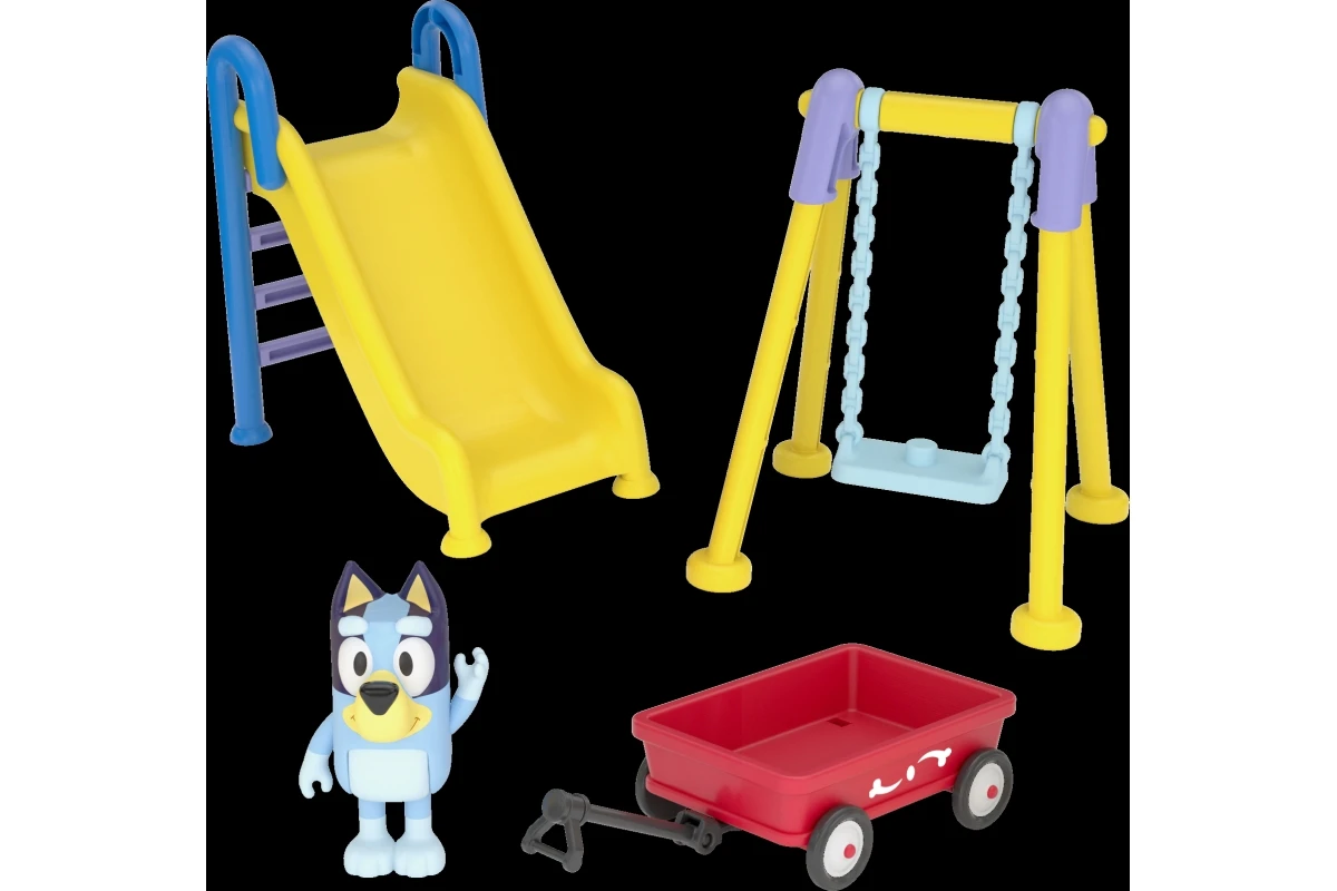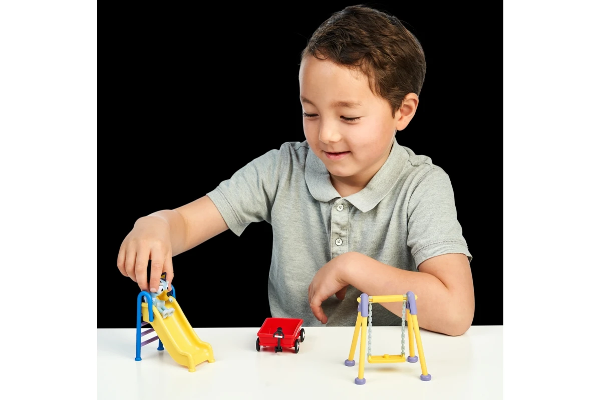 Premeňte detskú izbu na hravý svet plný dobrodružstva s obľúbenou hrdinkou Bluey! Mini herná sada v parku pozýva deti na nekonečnú zábavu a objavovanie. Bluey si môže užívať šmykľavku, hojdačku aj prechádzku s vozíkom - a deti si tak ľahko vytvoria vlastné príbehy inšpirované obľúbeným seriálom.