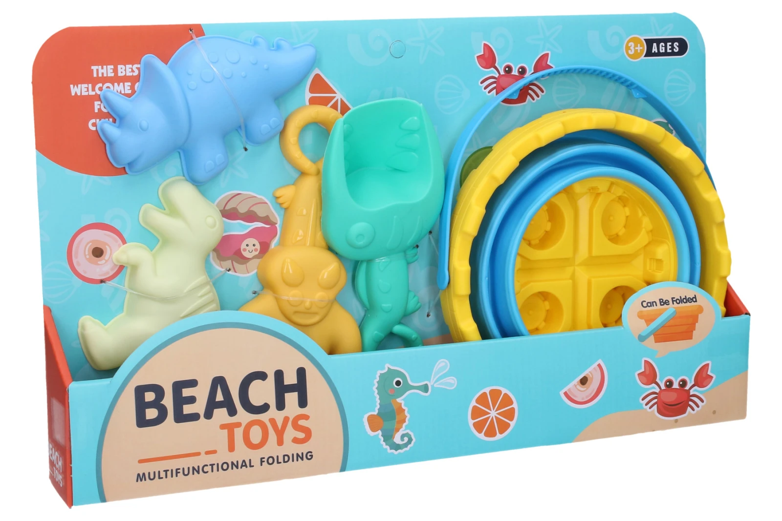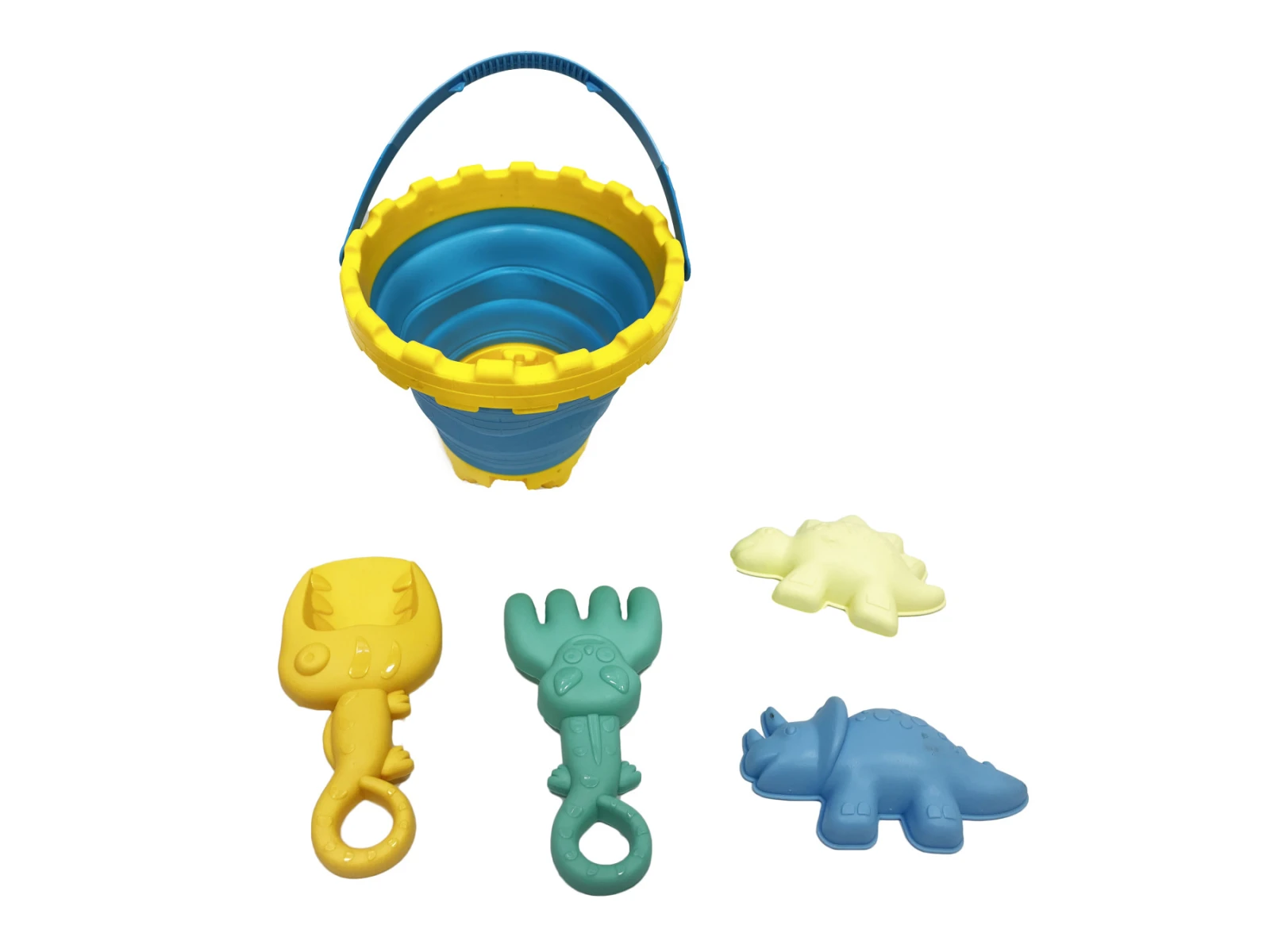 Súprava na piesok Dino v piatich dieloch ponúka malým objaviteľom všetko potrebné pre kreatívnu a zábavnú hru na pieskovisku aj na záhrade.