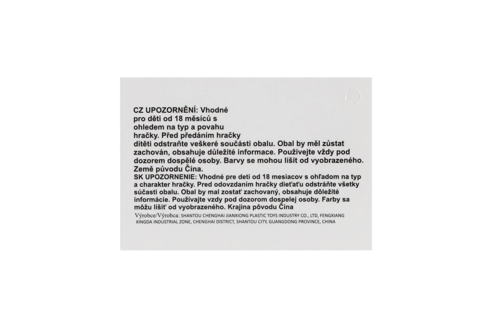 | Materiál hračky | plastové |