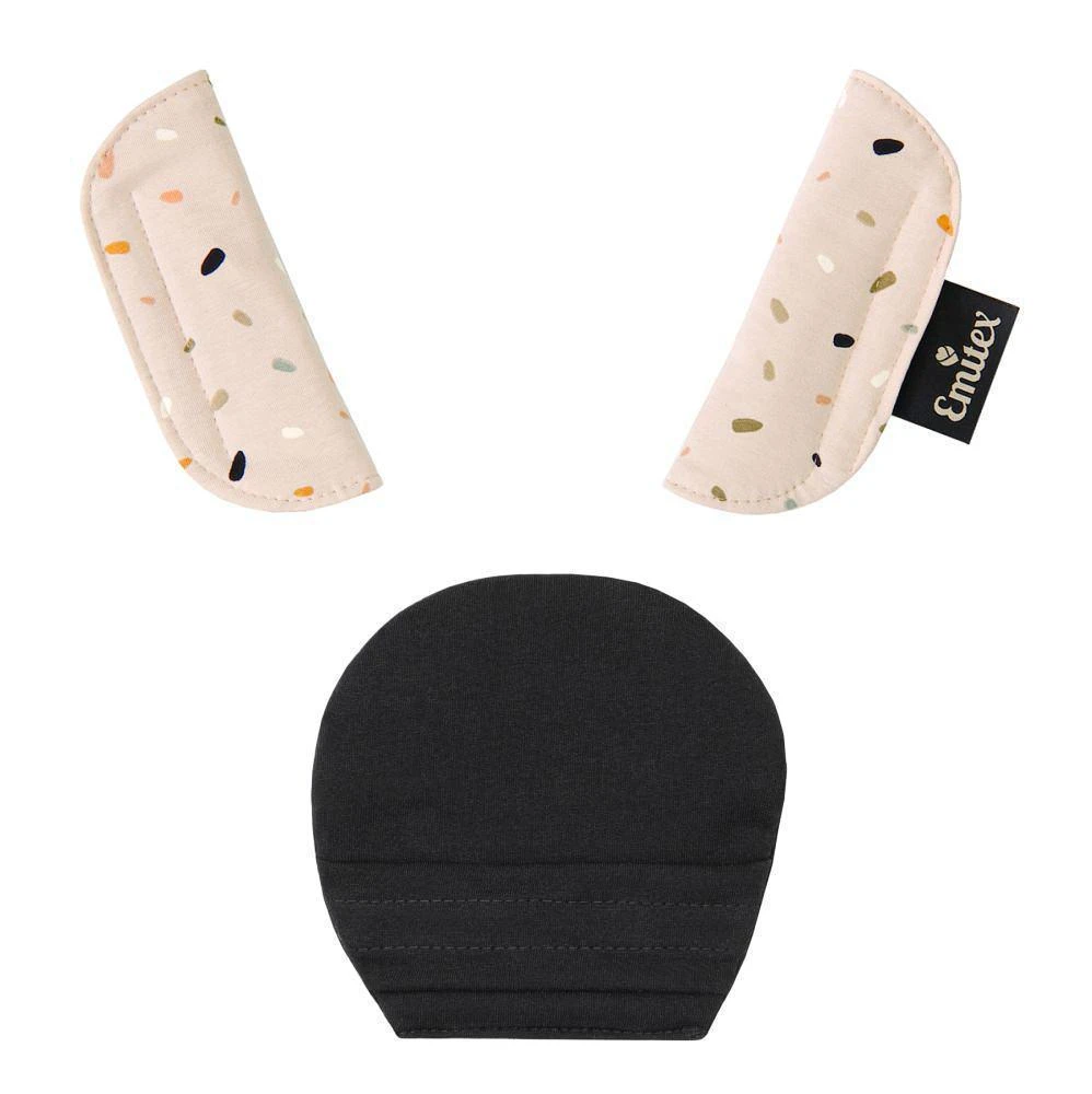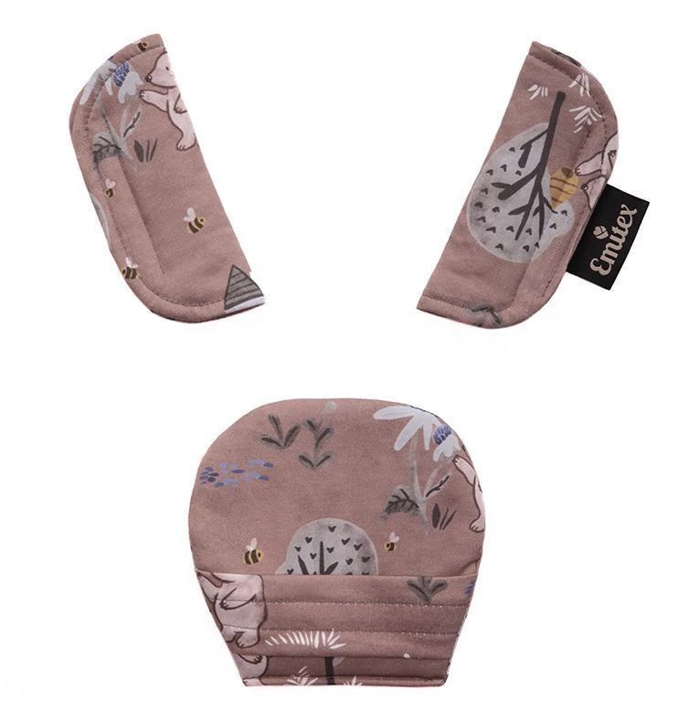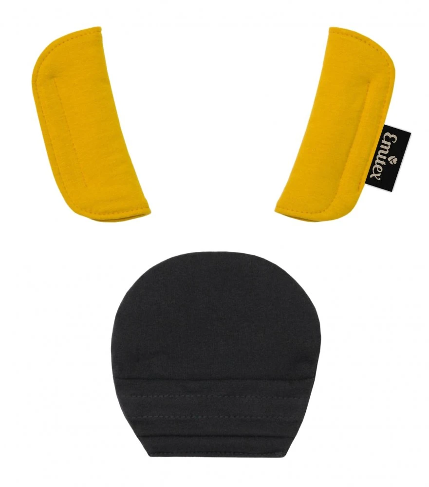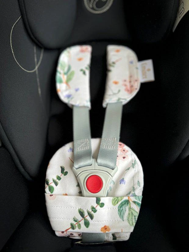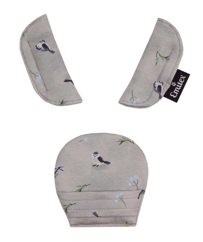 Súprava sa skladá z 3 dielov, väčšieho polstrovania pod sponu a polstrovania na dva pásy. Je vyrobené z príjemného, mäkkého materiálu. Použitím polstrovania sa stávajú pásy pre dieťa príjemne mäkké a tvrdá spona prestane dieťa tlačiť. Použitie ako v kočíku, tak v autosedačke. Ramenné polstrovanie majú suché zipsy na rýchle nasadenie, väčšie polstrovanie sa na sponu autosedačky navlieka.