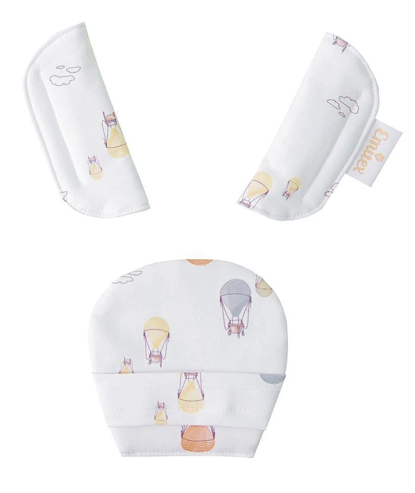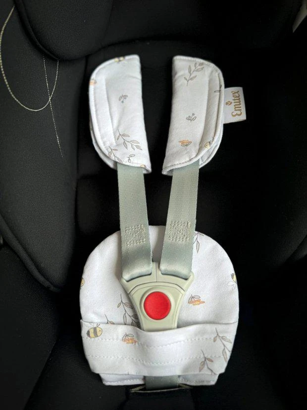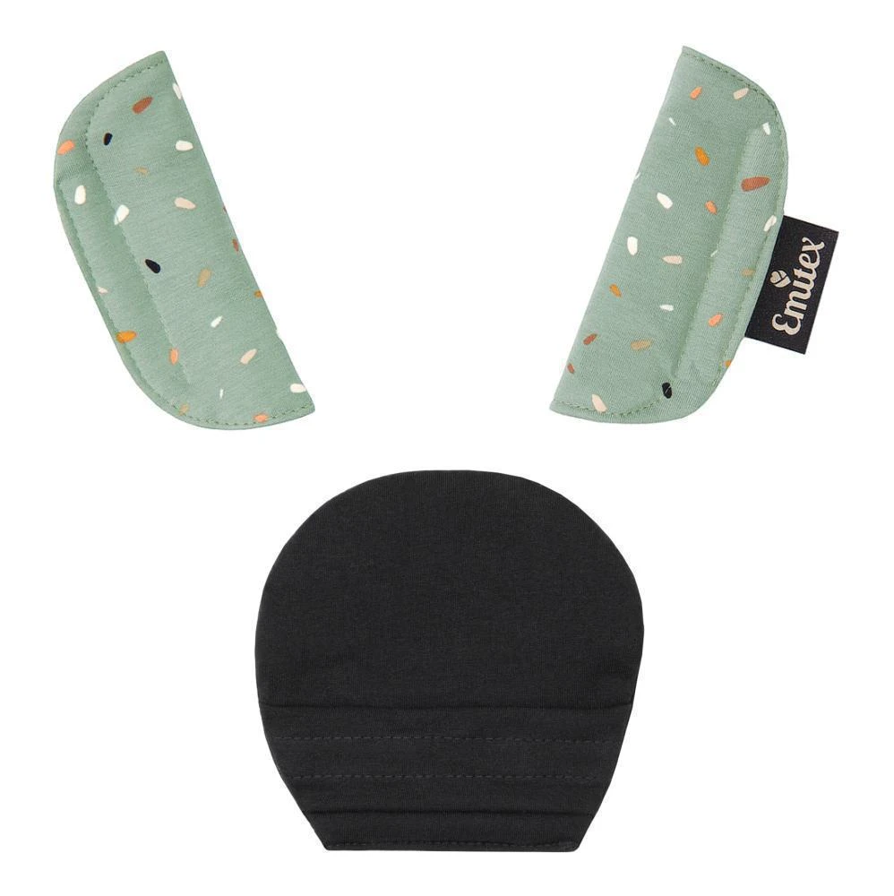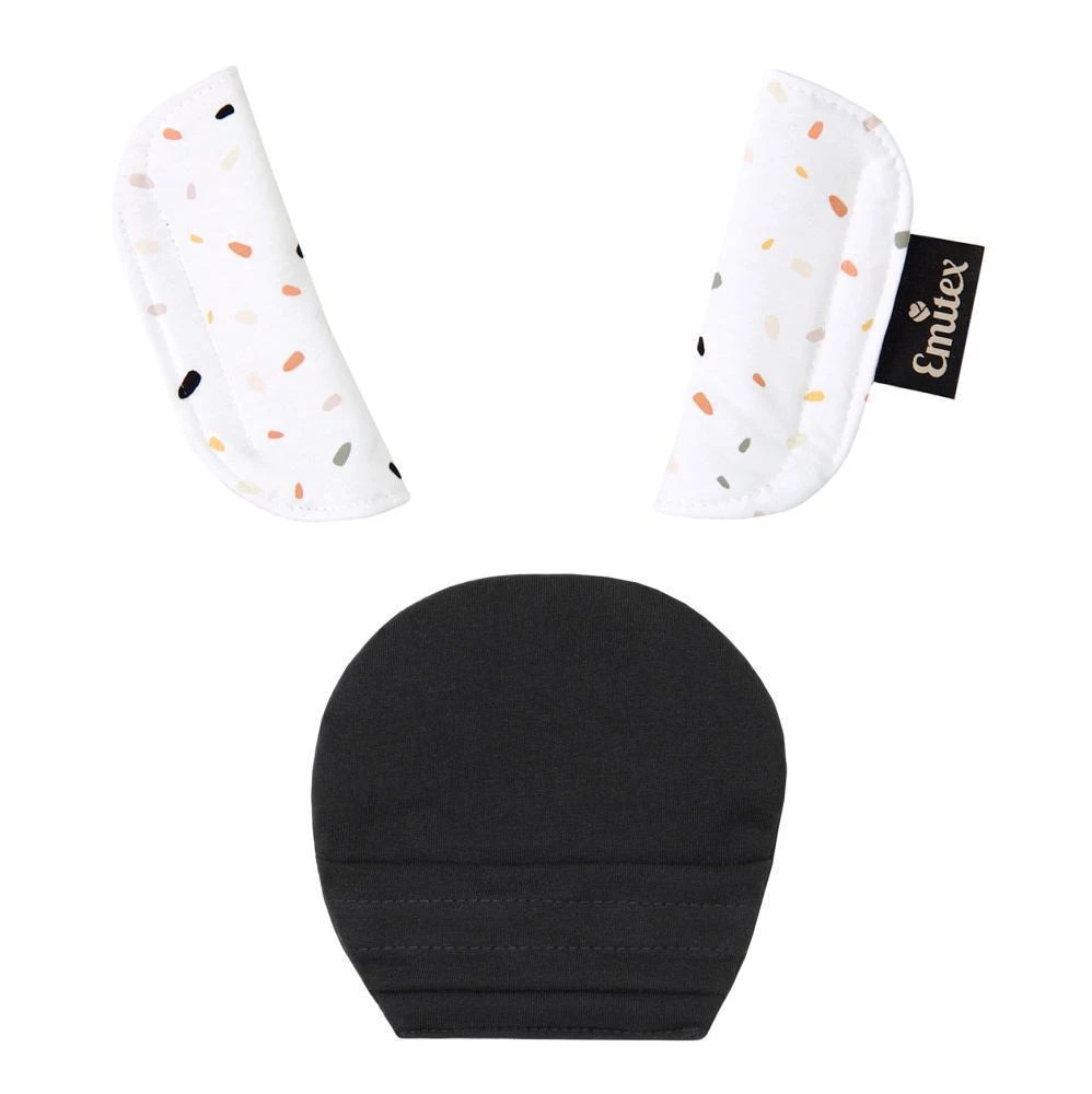 Súprava sa skladá z 3 dielov, väčšieho polstrovania pod sponu a polstrovania na dva pásy. Je vyrobené z príjemného, mäkkého materiálu. Použitím polstrovania sa stávajú pásy pre dieťa príjemne mäkké a tvrdá spona prestane dieťa tlačiť. Použitie ako v kočíku, tak v autosedačke. Ramenné polstrovanie majú suché zipsy na rýchle nasadenie, väčšie polstrovanie sa na sponu autosedačky navlieka.