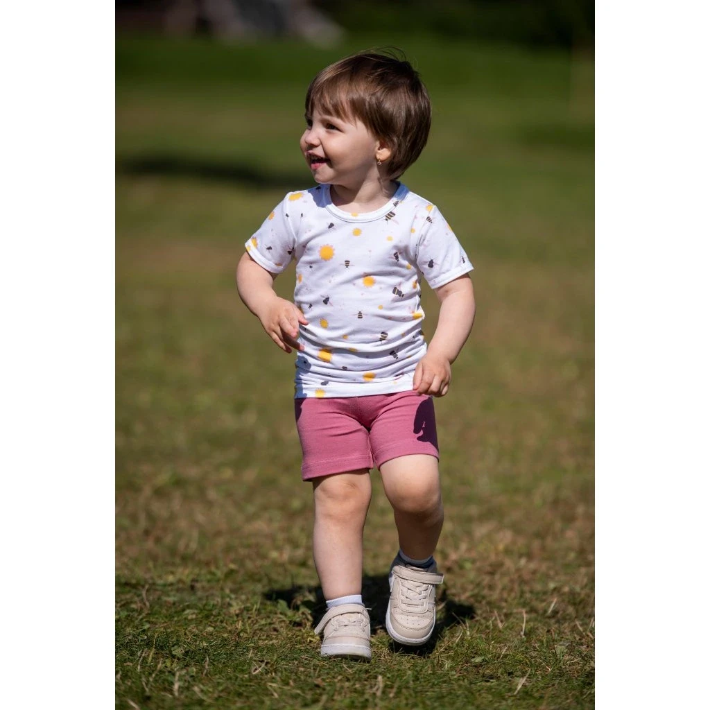 Kvalitné bavlnené tričko je univerzálna súčasť šatníka. Doplnené o kraťasy je tou najlepšou voľbou na teplé letné dni. Kraťasky sú v páse na gumu . Tá zaistí, že nebudú liezť a perfektne tak padnú každému detskému telíčku.