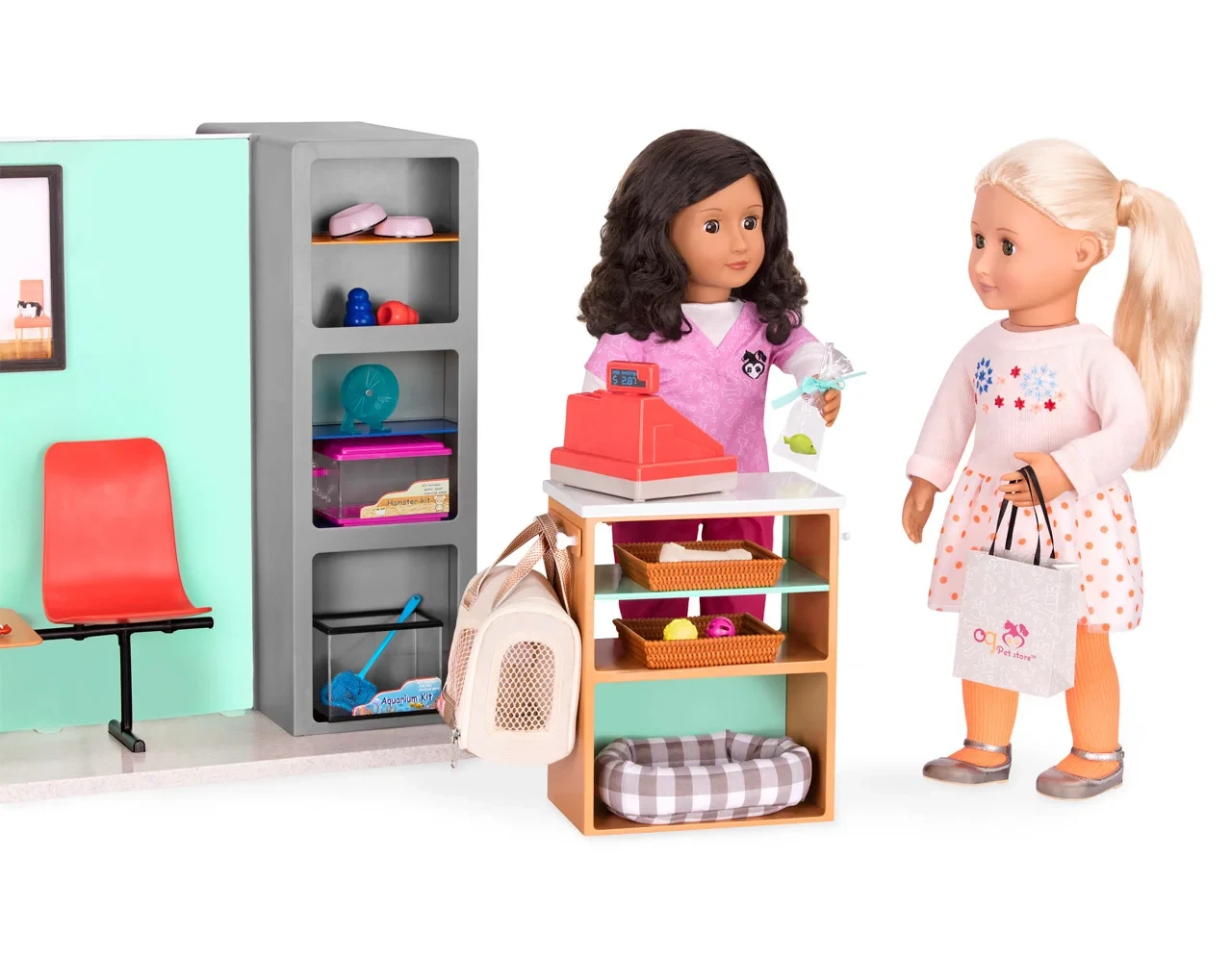 Výrobok obsahuje: 1 pult, 1 pokladňu, 2 prútené košíky, 2 misky pre domácich miláčikov, 1 akvárium, 1 sieťku na rybičky, 1 rybičku, 1 rybičku v sáčku, 1 klietku na škrečka s bežiacim kolieskom, 1 nákupnú tašku na 1 hračku, 2 hračky 1 loptička na hranie pre mačičky, 1 kosť na hranie, 1 prenosnú tašku na domácich miláčikov, 1 pelech pre psov.