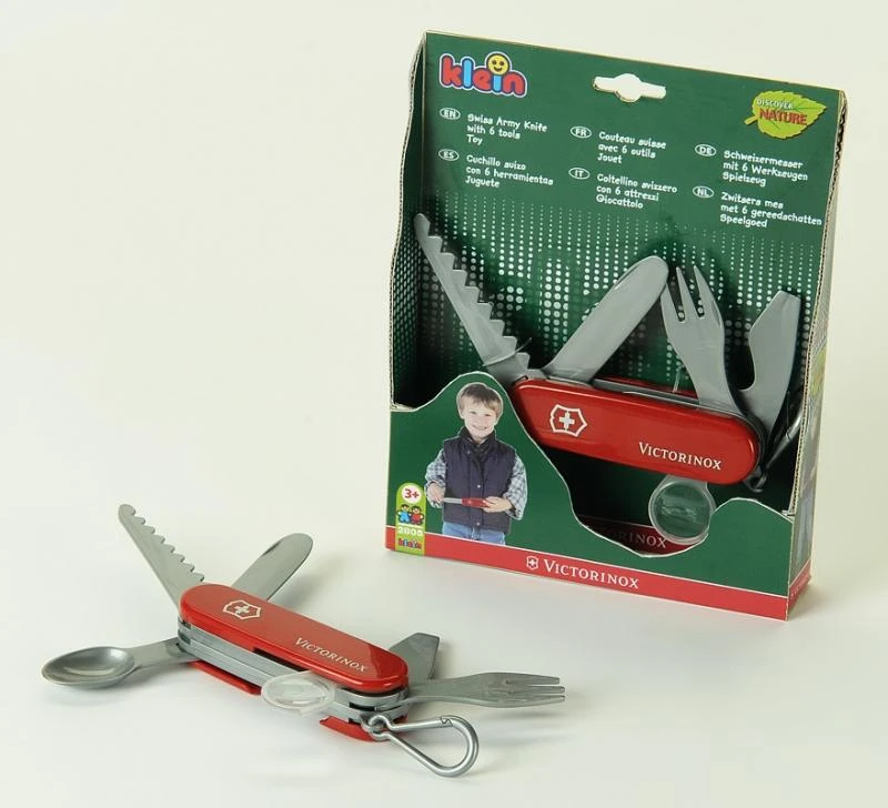 Švajčiarsky nôž. Lyžička, vidlička, lupa, nôž. Všetko v jednom noži.