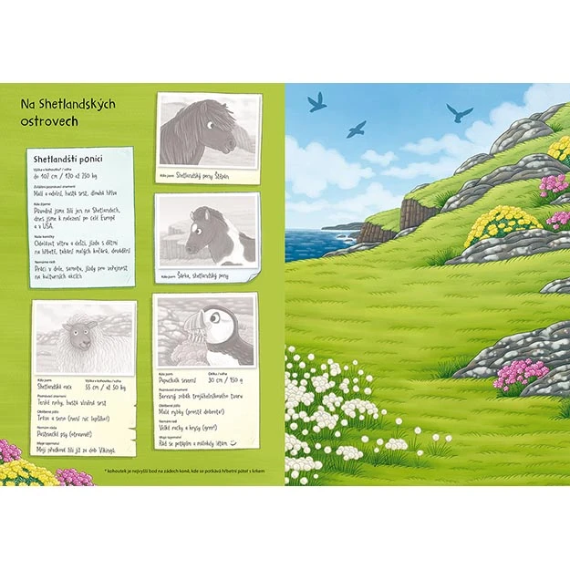 Samolepková knižka obsahuje 24 farebných strán plných rôznych druhov zvierat a 8 strán samolepiek na dolepenie.