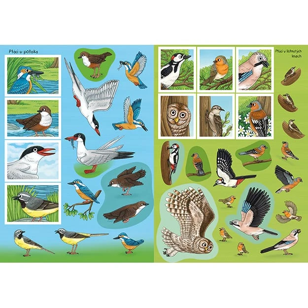 Samolepková knižka obsahuje 24 farebných strán plných rôznych druhov zvierat a 8 strán samolepiek na dolepenie.