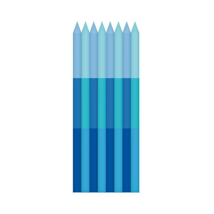 Sviečky narodeninové, pruhy modré, 10 cm, 24 ks