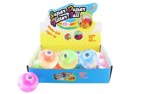 Loptička s okom na nemeniteľné batérie. Po náraze začne oko v loptičke blikať. Priemer 6 cm. Materiál plast.