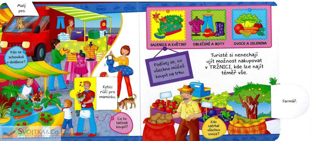 Čo vezie táto dodávka? Čo si musíš kúpiť, keď ideš do múzea? Čo chytil rybár? Kto sa schováva za stromom?