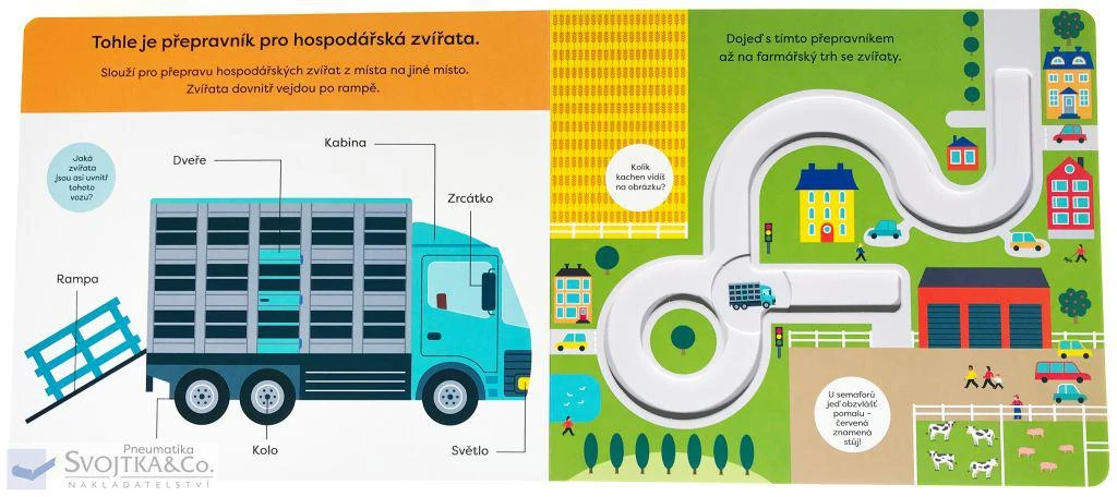 Traktor s veľkými kolesami, usilovný kombajn a veľký prepravník pre zvieratá rozhodne nesmie chýbať na žiadnej poriadnej farme.