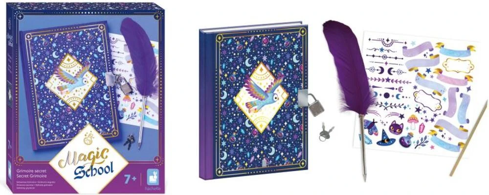 Písať do malého notýska je skvelý spôsob, ako vyjadriť svoju kreativitu, svoju osobnosť a rozvíjať svoju predstavivosť! Deti môžu popísať svoj deň, ktorý strávili hraním sa na čarodejníka alebo čarodejnice, rovnako ako deň v škole, podľa toho, akú majú práve náladu. Fialové farby tohto tajného grimoáru pozývajú k mágii a čarovaniu! Preskúmajte tajomstvo mágie so sériou „Magická škola“, spolu s kreatívnymi sadami na voľný čas pre deti na tému čarodejníckych učení, pre tvorivé a čarovné popoludnie!