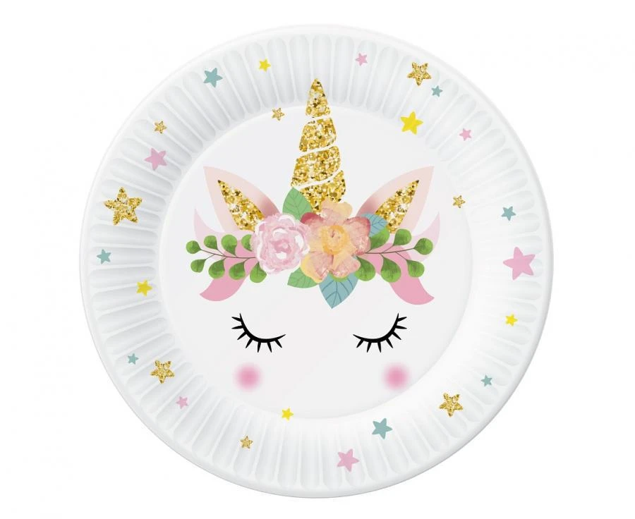Tanieriky papierové - Jednorožec 18 cm, 6 ks
