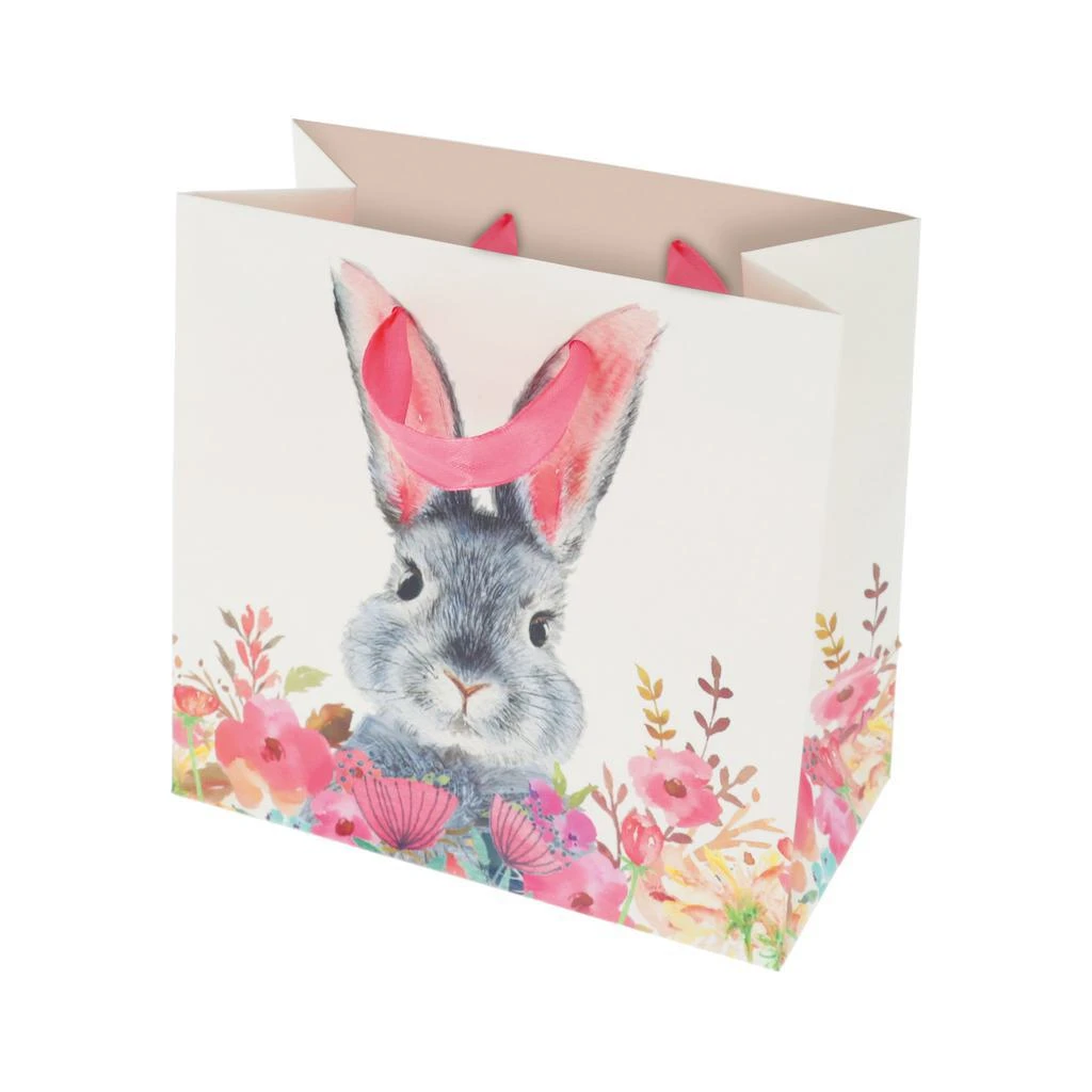 Taška darčeková 16,5 x 16,5 x 9 cm, Zajac s kvetmi