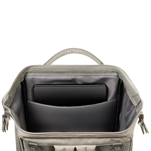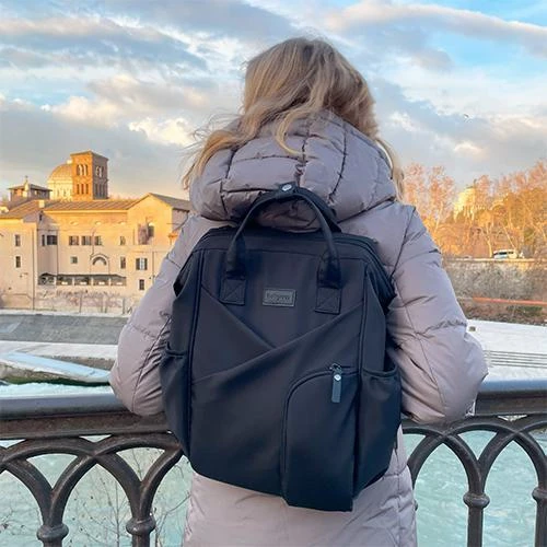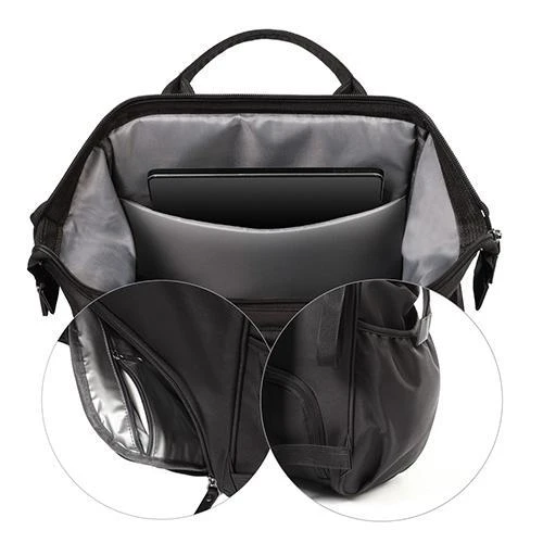 Vďaka priestornosti sa do neho zmestí všetko potrebné – plienky, fľaše, knihy, tablety i drobnosti. Vnútri sa nachádza až 12 praktických vreciek, ktoré vám pomôžu udržať poriadok vo všetkom, čo potrebujete pre seba alebo bábätko.