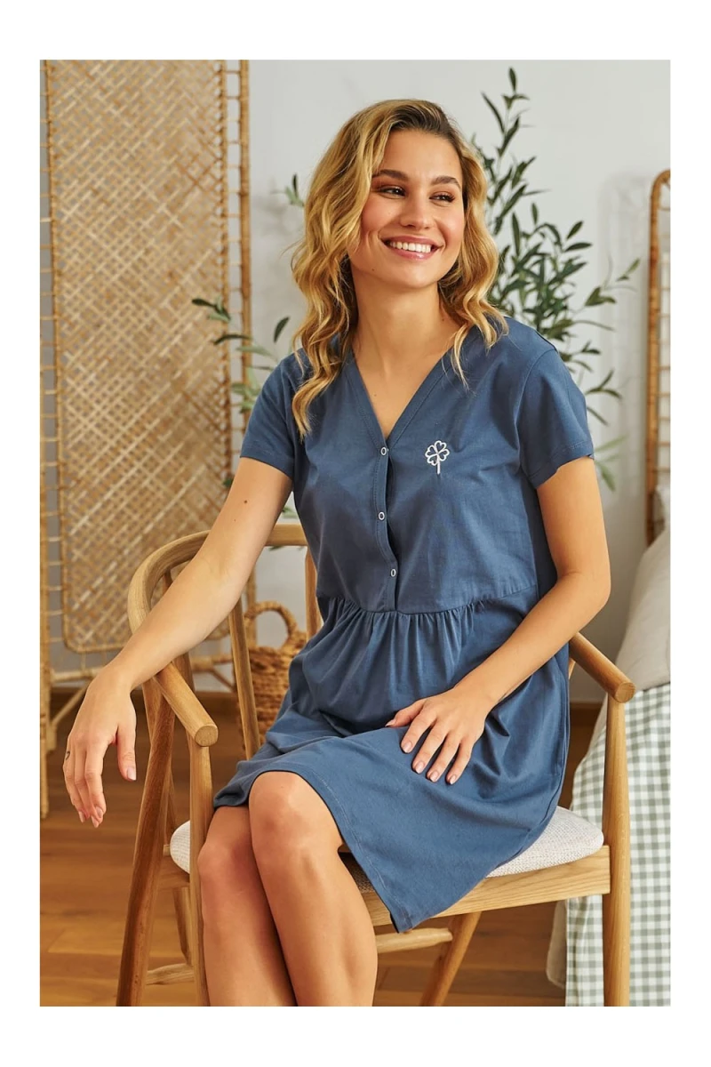 Štýlová a pohodlná tehotenská a dojčiaca nočná košeľa s jemnou výšivkou štvorlístka je ideálnou voľbou pre nastávajúce aj novopečené mamičky.